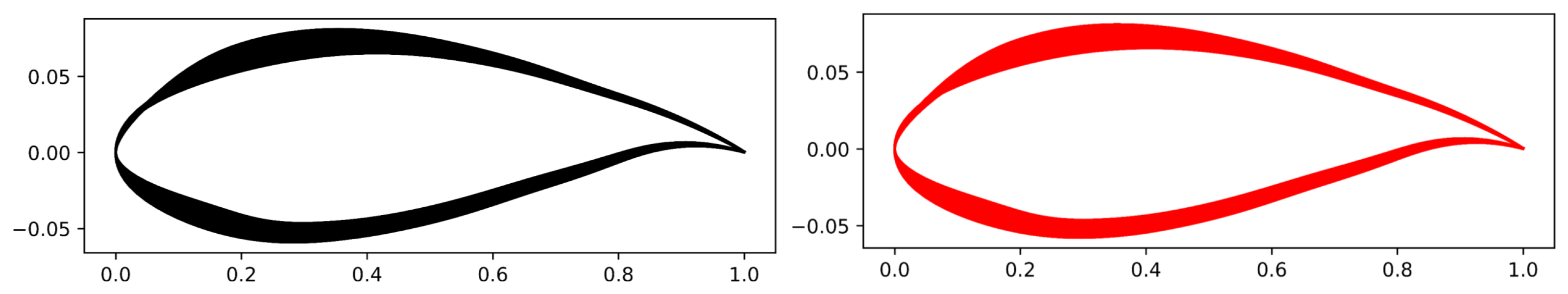 | Airfoil design, BézierGAN | 1600 UIUC airfoils | 192 → 18 | MSE = 2 × 10−4 | Chen et al. [93] |