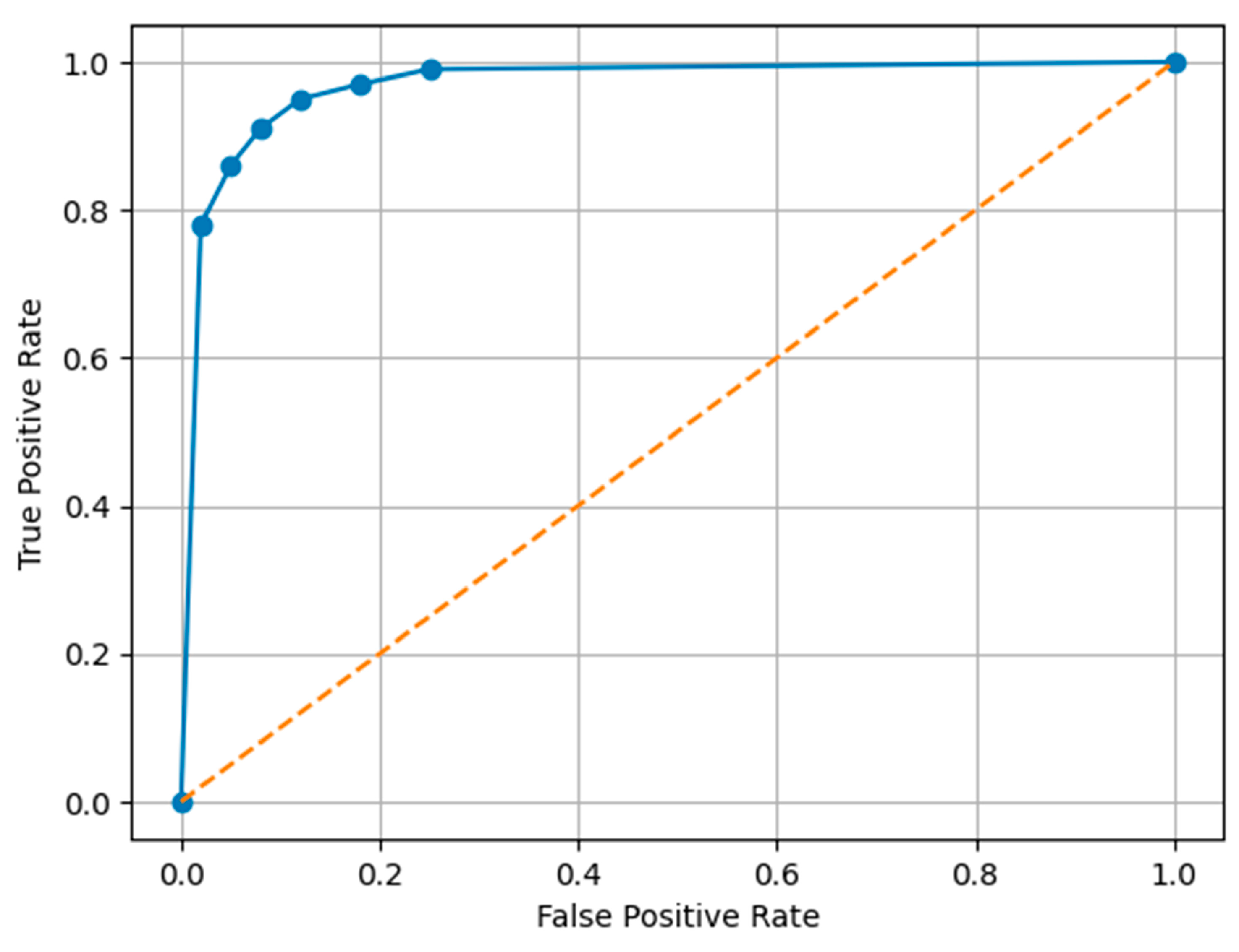 To complement the confusion matrix evaluation, receiver operating characteristic (ROC) curves were further analyzed to assess the discrimination capability of different classifiers from a threshold-independent perspective. For multi-class evaluation, a one-versus-rest strategy was adopted, and ROC curves were generated for each class. The corresponding area under the curve (AUC) values are summarized in