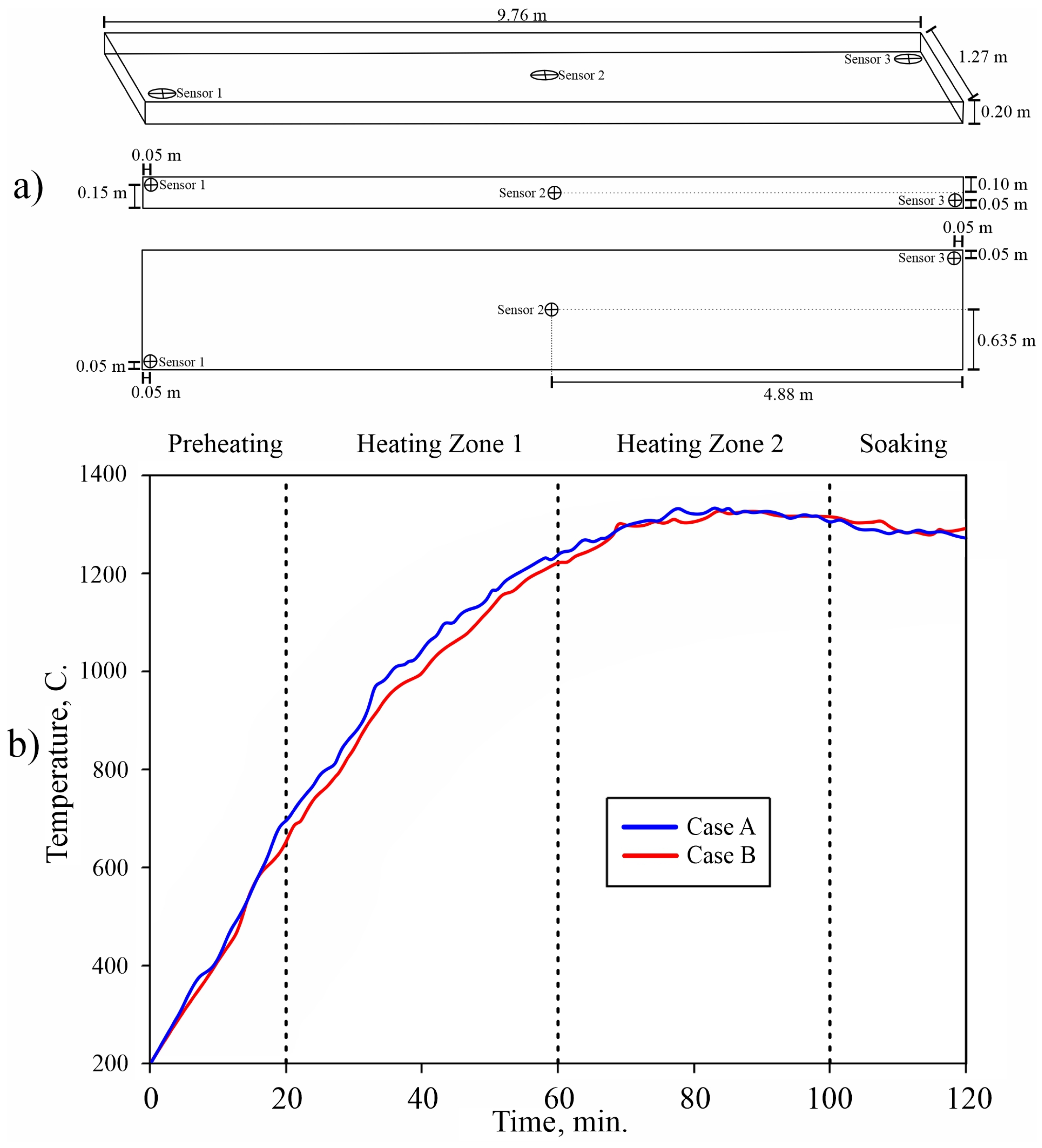 - Calderón-Rojas, M.U.; Hernandez-Bocanegra, C.A.; Ramos-Banderas, J.A.; Solorio-Diaz, G.; López-Soria, J.J. Comparative Study of Two Methodologies for the Analysis of the Thermal Evolution of Steel Slabs in a Reheating Furnace. In Materials Processing Fundamentals 2025; Anderson, A., Sabau, A.S., Iloeje, C., Lazou, A., Molnar, K.M., Eds.; Springer: Cham, Switzerland, 2025; pp. 141–152. [Google Scholar] [CrossRef]
