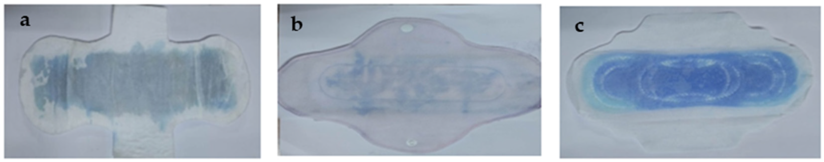 31]. This procedure evaluates the pad’s ability to manage menstrual flow promptly and effectively.