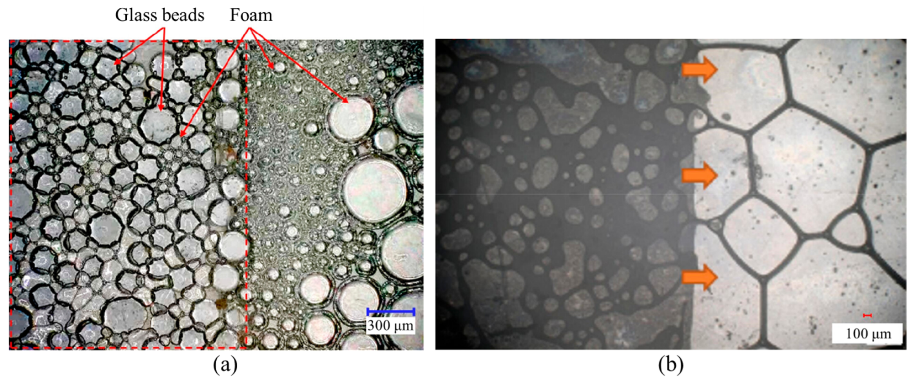 - Li, J.; Feng, Y.; Wang, J.; Xu, Z.; Li, B.; Zhang, C. Study on formation and migration law of foam in fractures and its influencing factors. ACS Omega 2024, 9, 24362–24371. [Google Scholar] [CrossRef] [PubMed]