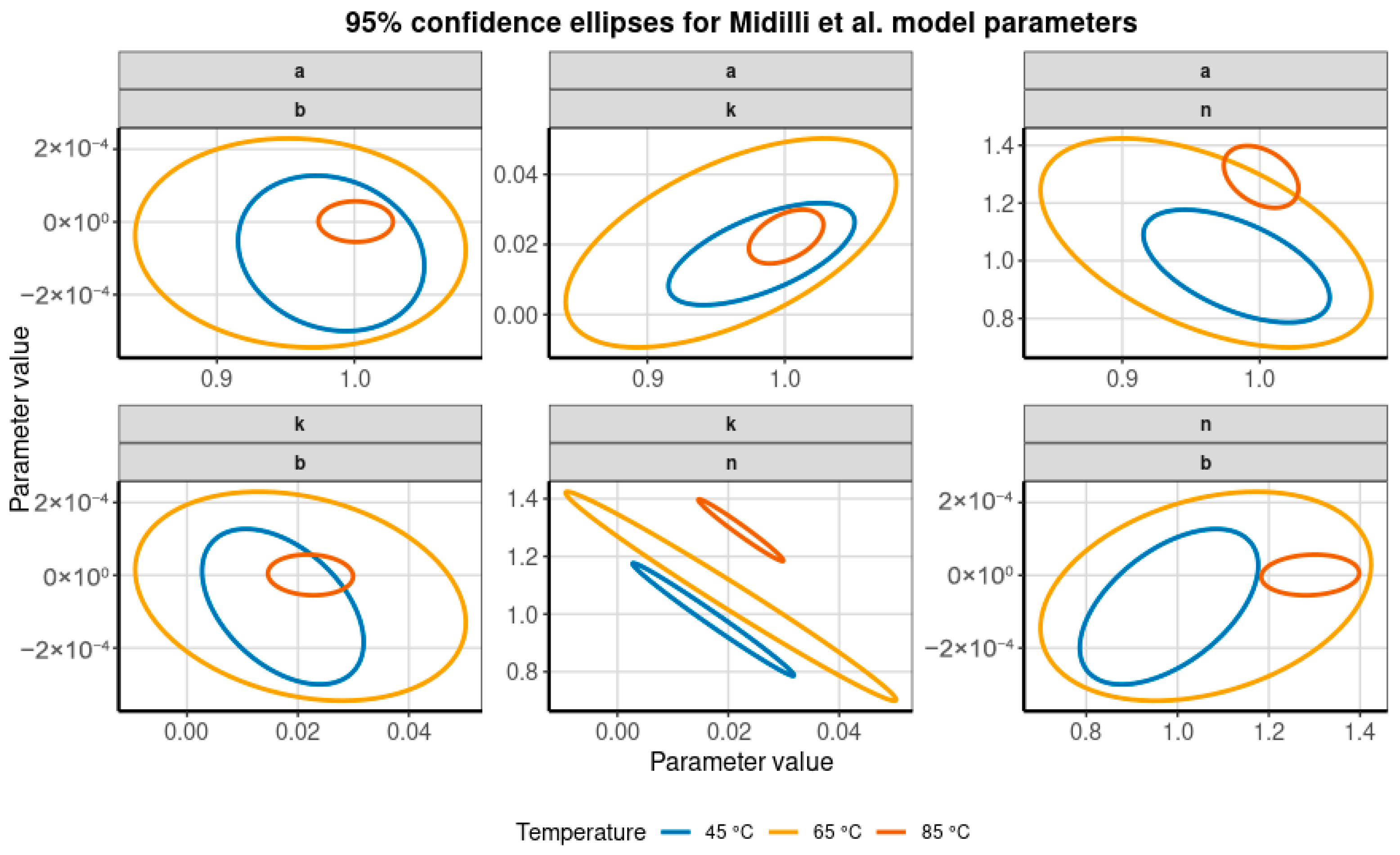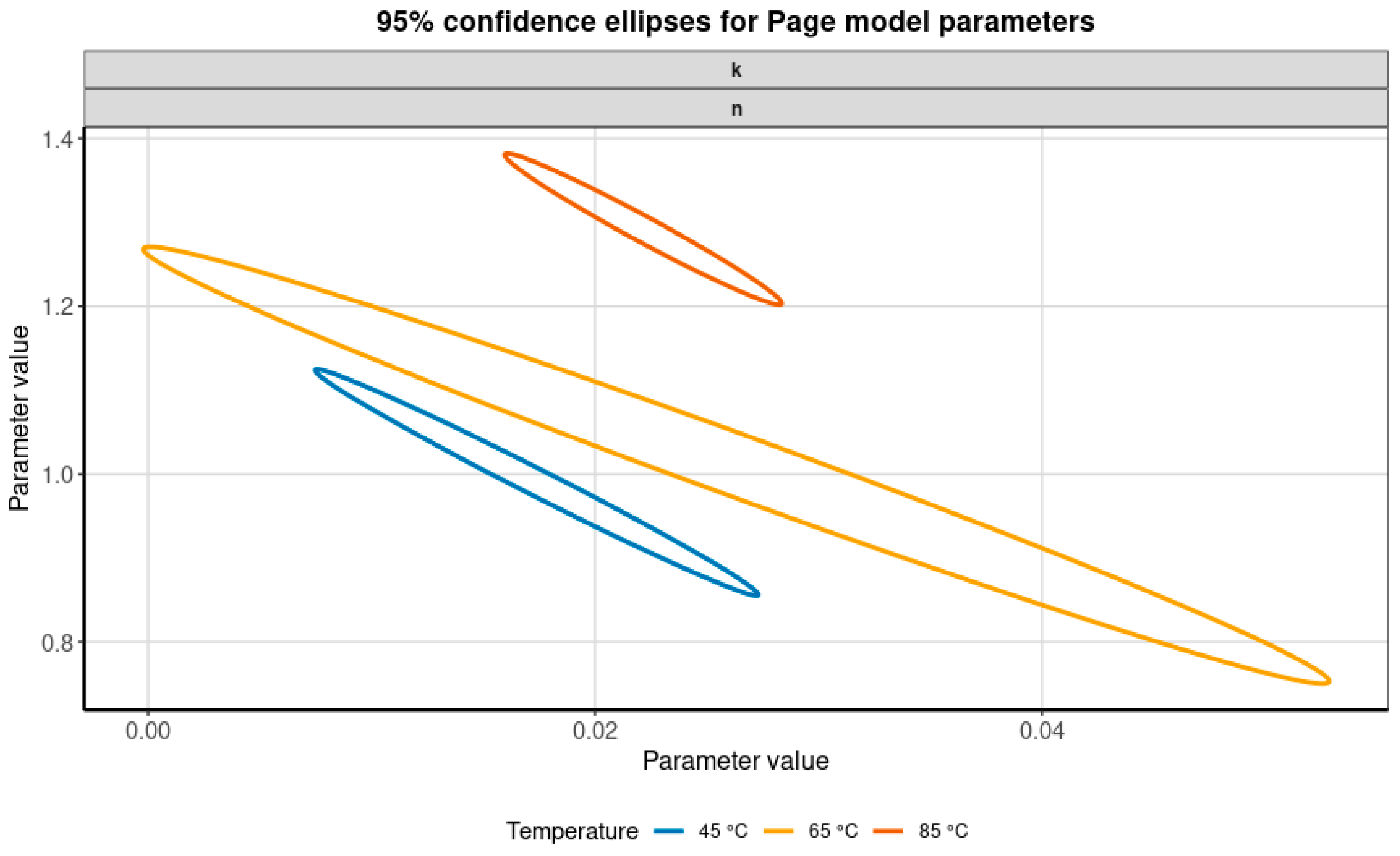 With regard to the drying models, it was found that the two-term model generally presented higher R2 values and lower chi-square and RMSE values compared with the other models evaluated (although, in general, the adjustments for all models were very good), as already mentioned. Considering the issues of non-identifiability of the two-term model and the numerical problems in the estimation process, other models should be considered as alternatives for the present problem—especially if we consider that all models showed excellent fits to the experimental data. In this sense, both the Midilli et al. and Page models yielded similar values for the statistical performance indicators. Nevertheless, the Midilli et al. model employs four adjustable parameters, in contrast to the two parameters of the Page model. For both formulations, a strong correlation between the parameters k and n was observed, highlighting limitations in the independent interpretation of these parameters. Finally, it should be noted that parameter b in the Midilli et al. model presented extremely low values, pointing to the insignificance of the term bt in the model (obviously, for the problem in question).