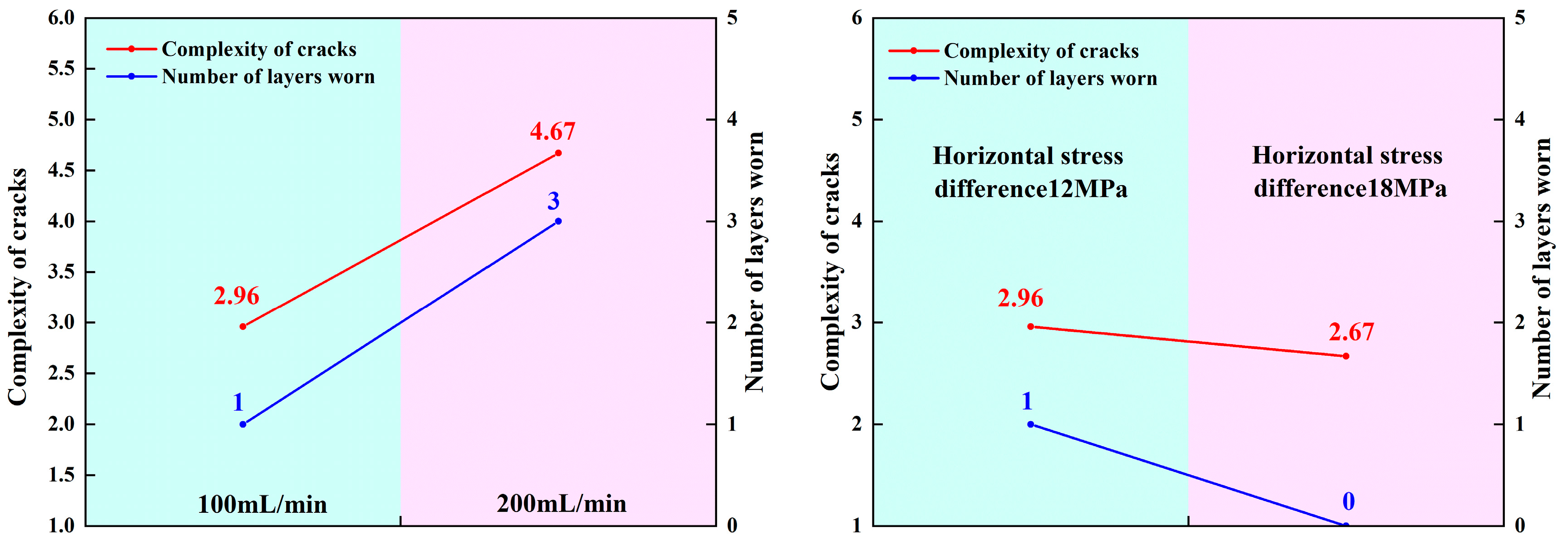 | Serial Number | Stress (MPa) (σh/σH/σV) | Flow Rate (mL/min) | Fluid Viscosity (mPa·s) | Influencing Factors | Note |