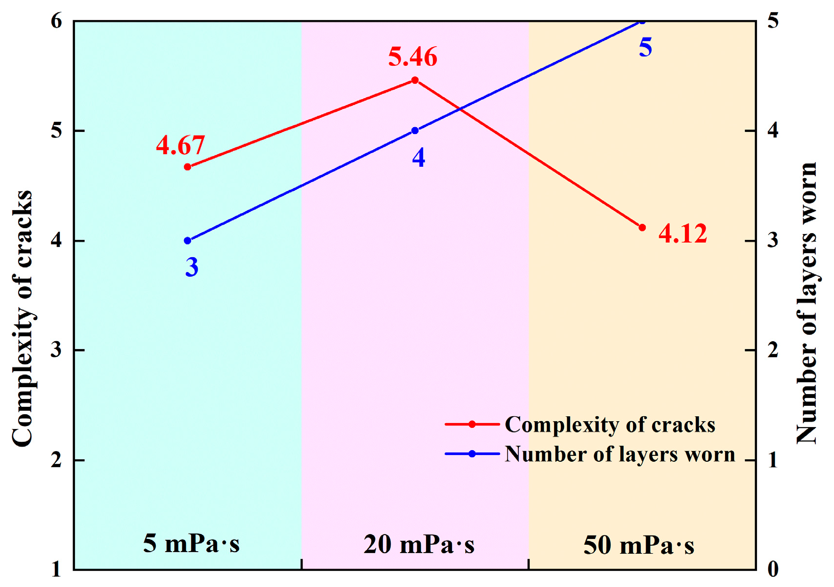 4.3. The Influence of Viscosity Changes on the Penetration of Cracks