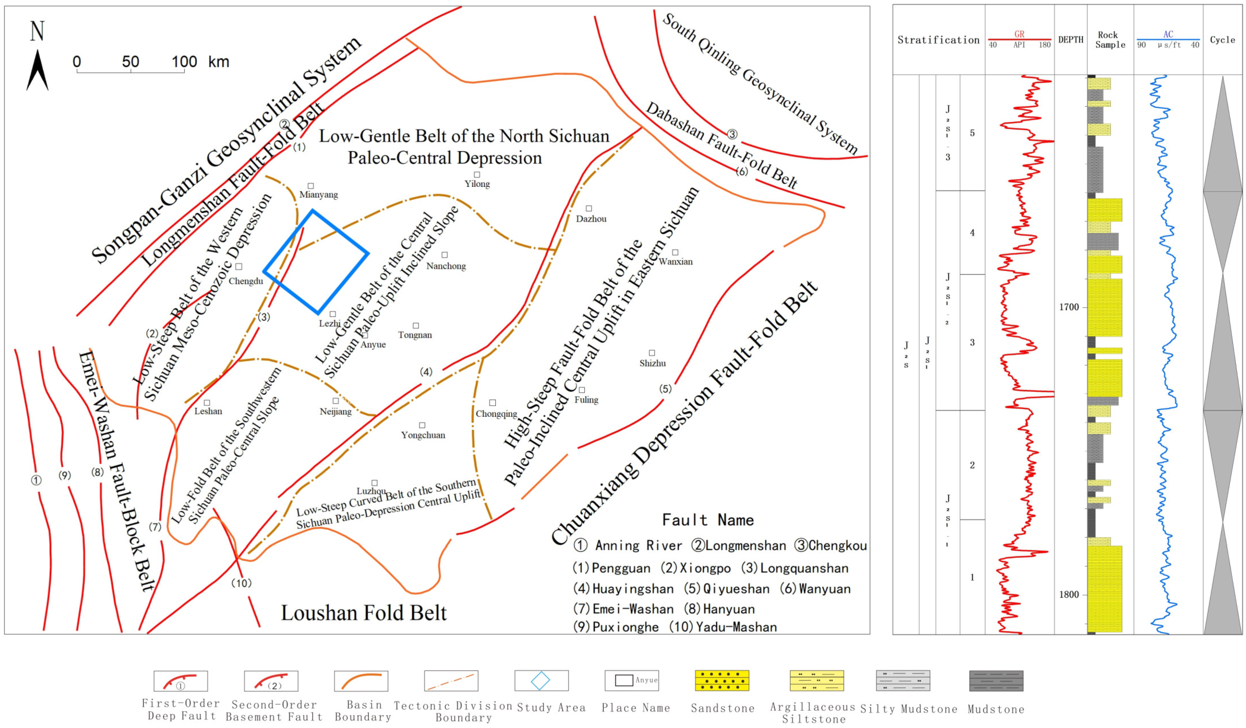 - Liu, M.J.; Liu, H.Y.; Xiao, Y.; Song, L.; Cao, J.; Li, T.; Wang, J.; Liang, C. Influence of Fault-Sandbody Configuration Evolution Model on Differential Enrichment of Distal Tight Sandstone Gas—A Case Study of Jurassic Shaximiao Formation in Central Sichuan Area. Oil Gas Geol. 2025, 46, 1630–1645. Available online: https://oversea.cnki.net/kcms2/article/abstract?v=zO3wb1M9ekzA0hifs7tYi3kvU7DpRG_N2J0OiIL2JSmOP_NMle0pGjk-H4eg6Wy1dtq2qHy2JmBwBvmXJsATPDpXoH_ZnNb9u14jDrBgsI1D8KeLxJyqTKIxXV21WrIdt9mVrlhU32fNgYw_7jpNQKH42O6HUXK0eEG2yaLHil5OrpTz-ACvgg==&uniplatform=OVERSEA&language=en (accessed on 1 March 2026).