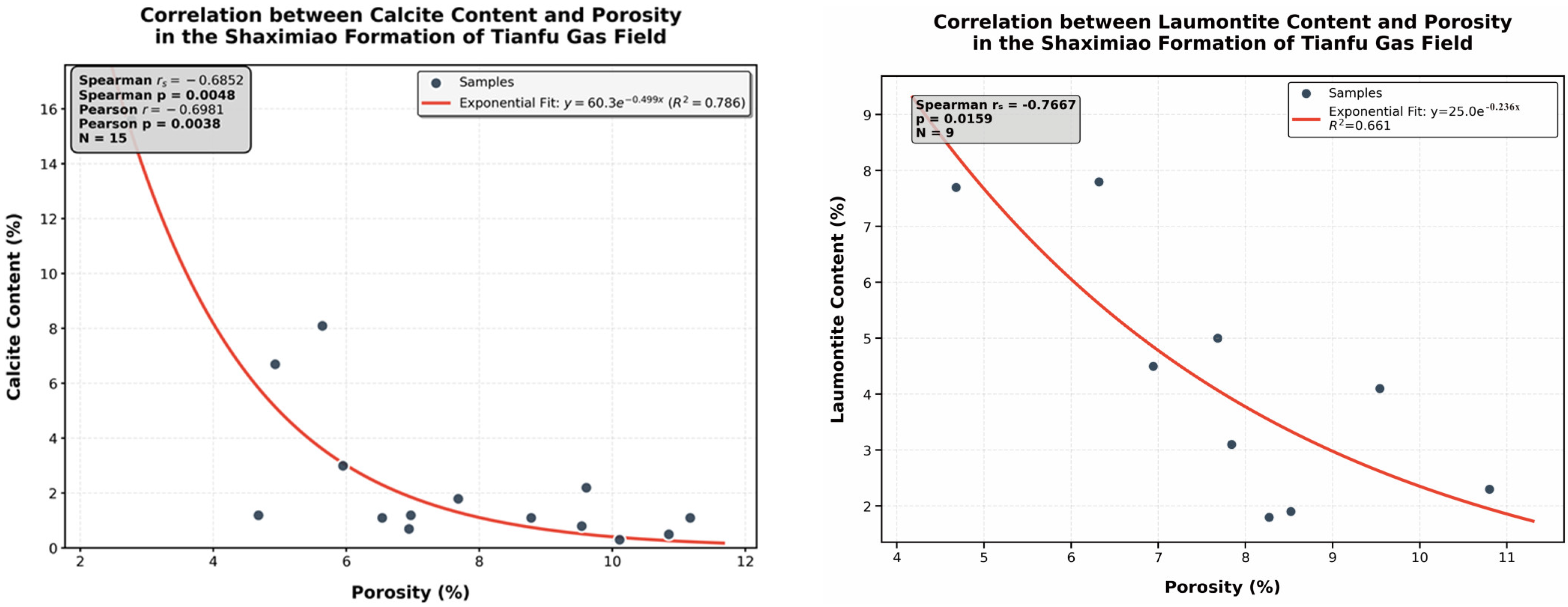 6.2. Calcite and Laumontite Cementation: Key Restricting Factor for Reservoir Densification