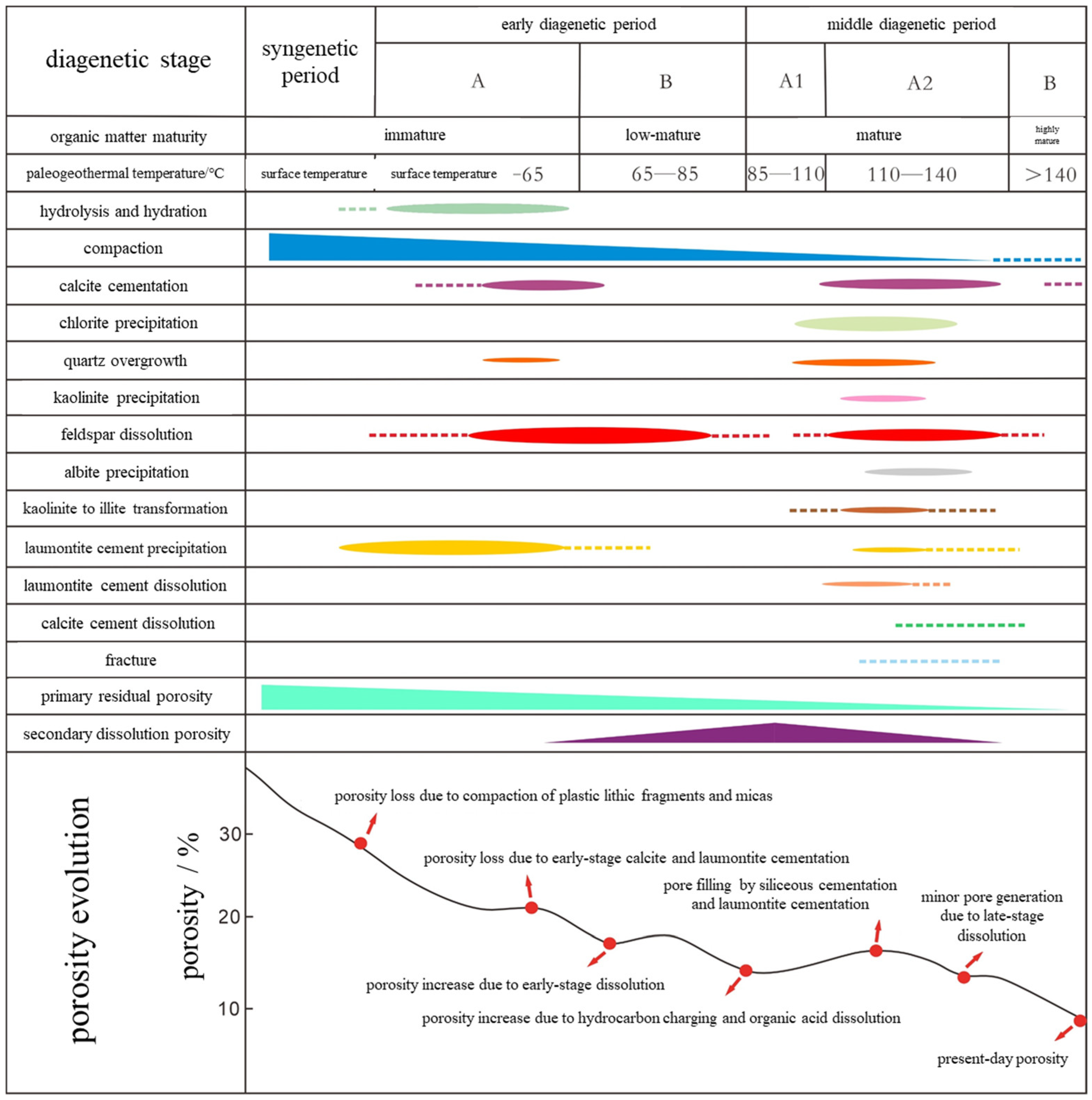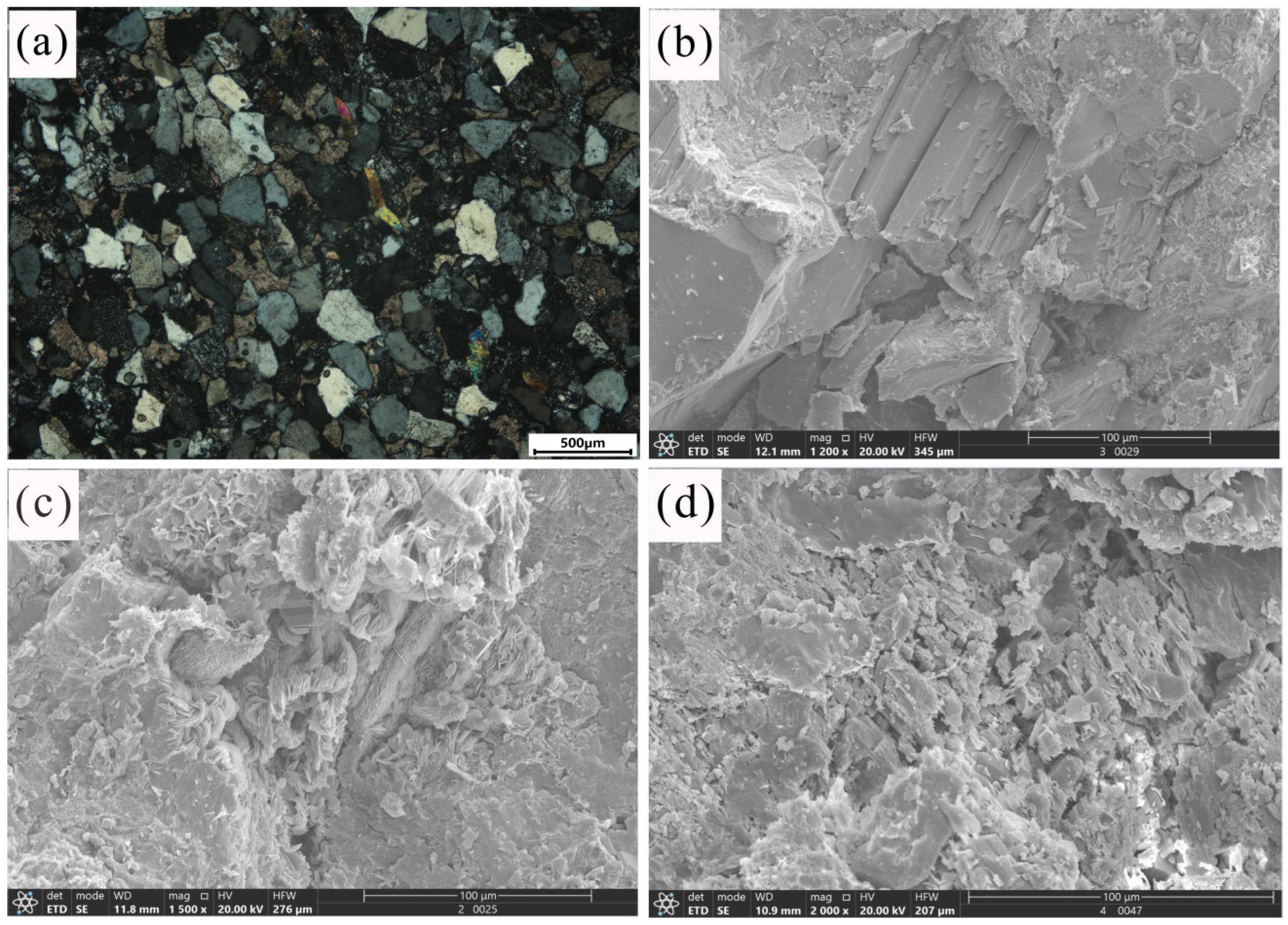 - Yang, H.; Tian, Y.Y.; Sun, Z.Y.; Liu, B.; Liu, S.B.; Yin, H.; Pei, S.Q.; Yang, T.; Tang, X.; Xie, G.Y.; et al. Diagenetic Characteristics of the 1st Member of Middle Jurassic Shaximiao Formation in Zitong Area, Sichuan Basin and Its Influence on Reservoir Density. Mineral. Petrol. 2025, 1–15. Available online: https://link.cnki.net/urlid/51.1143.TD.20250910.1332.002 (accessed on 1 March 2026).