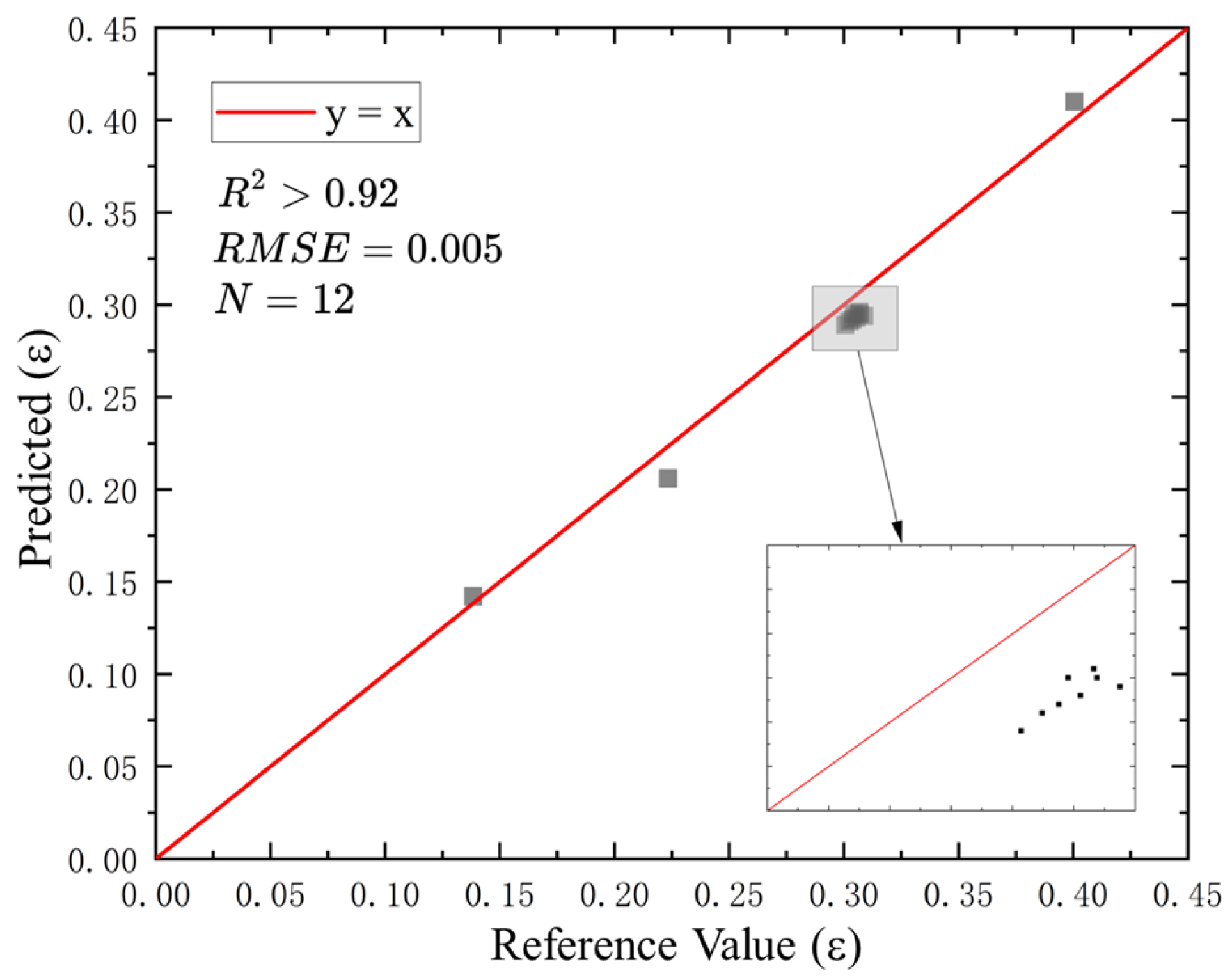 Regression on the simulation dataset shows good model fit, with R