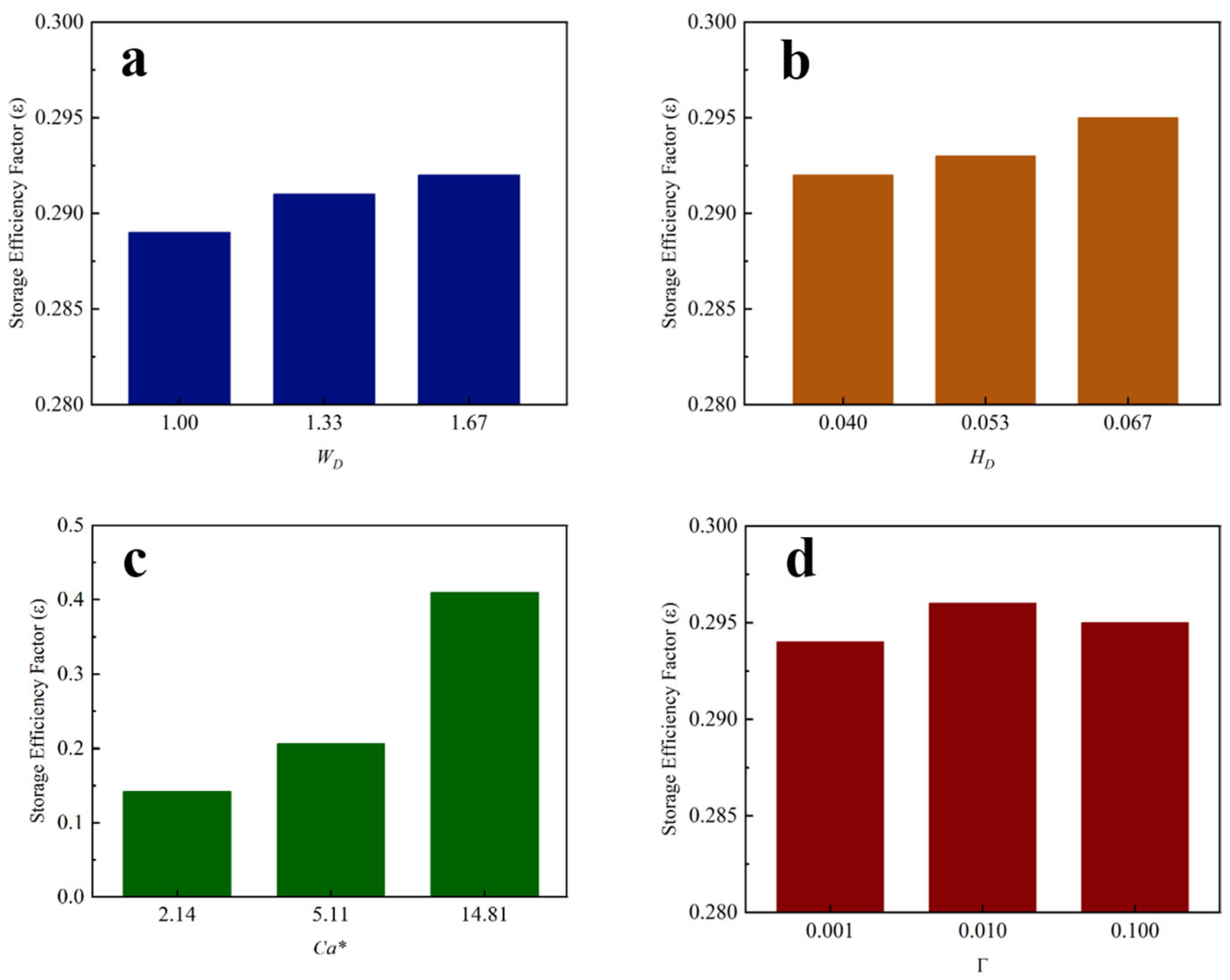 Ca* has the strongest effect on the storage efficiency factor
