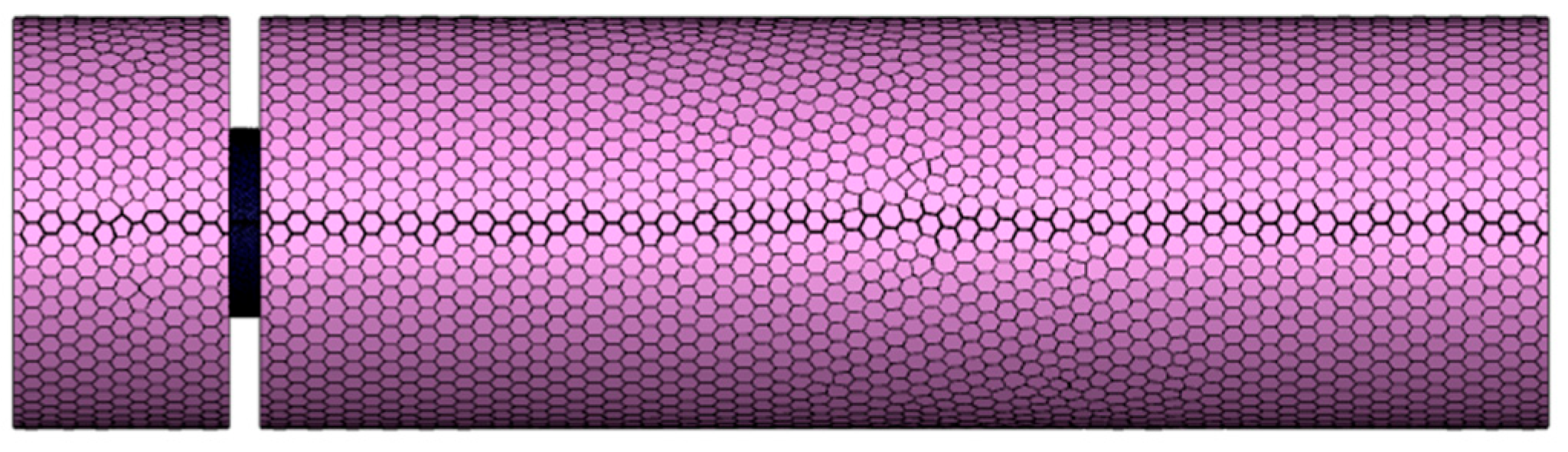 Regarding the boundary condition specifications, a pressure inlet was applied at the inlet boundary. The inlet turbulence intensity was set to 5%, and the turbulent length scale was specified based on the inlet hydraulic diameter to accurately represent the incoming ambient flow. At the outlet boundary, a pressure outlet condition was assigned with a static gauge pressure of 0 Pa, simulating the discharge into an open atmospheric environment. The impermeable FW-H formulation was employed to predict the far-field noise, as the surface dipole is the dominant acoustic source in the current low-Mach-number interaction.