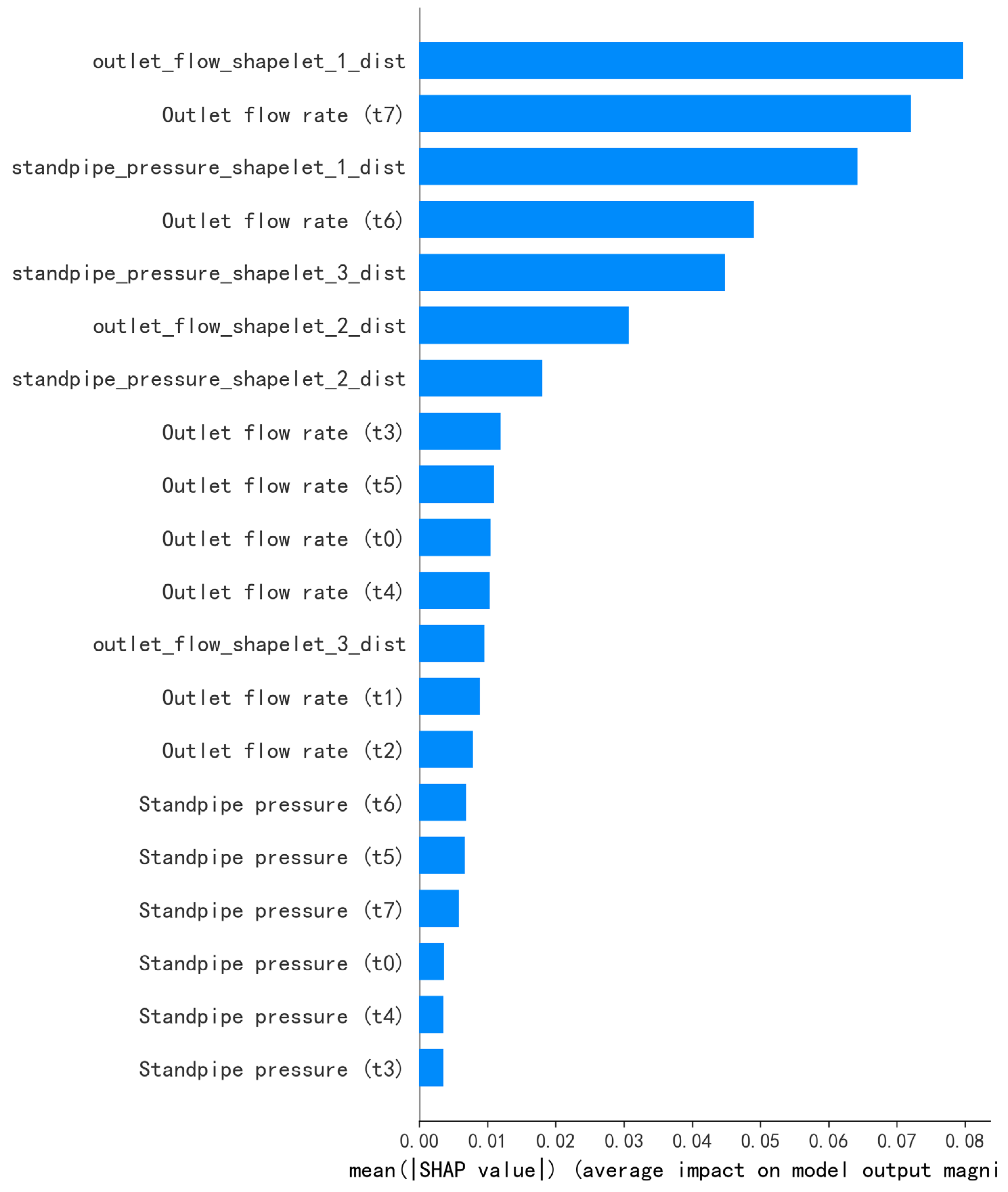 In this study, SHAP values are calculated for the trained monitoring model to perform both global and local interpretability analysis. Global attribution identifies parameters that most strongly affect prediction behavior across the dataset, enabling comparison with engineering knowledge regarding pressure dynamics, flow imbalance, fluid return variation, and hydrocarbon indicators. Local attribution examines individual alarm events, highlighting which features drive model responses in specific operational scenarios.