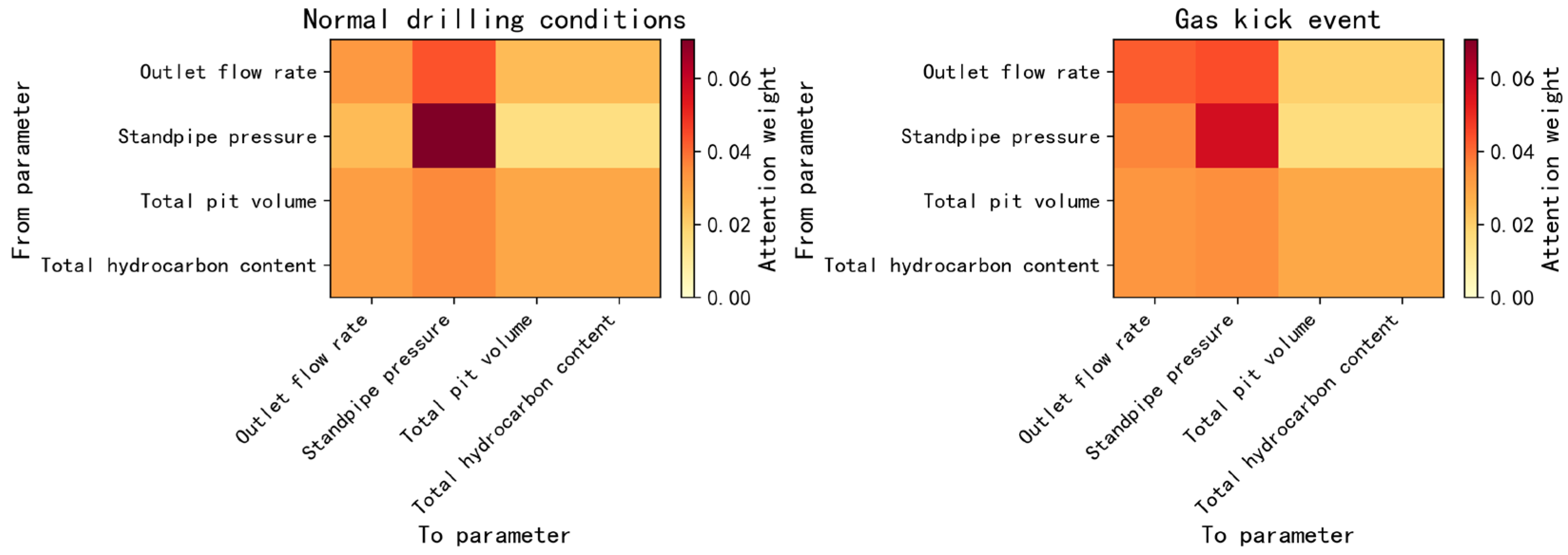 During training, attention coefficients regulate message passing among nodes and reflect the relative influence of neighboring parameters on representation updates. Analysis of these learned coefficients enables identification of dominant interaction pathways that contribute to anomaly detection. For example, pressure–flow coupling or fluid–gas response relationships can be revealed through elevated attention intensity.