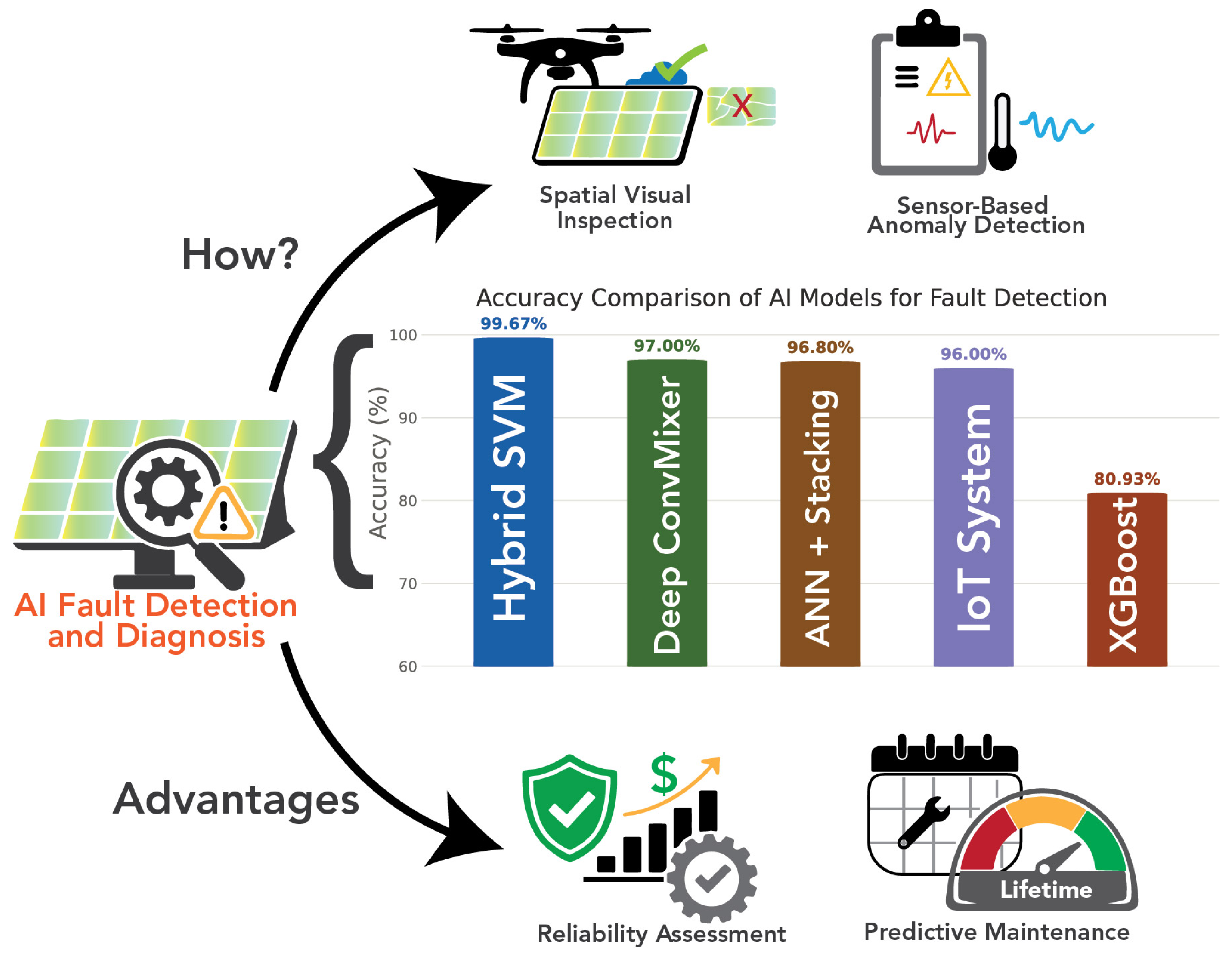 | Role in Solar Energy Systems | Enhances operational monitoring and fault identification [37,38,39,40,42] | Supports long-term reliability, forecasting confidence, and planning in high solar penetration systems [43] |