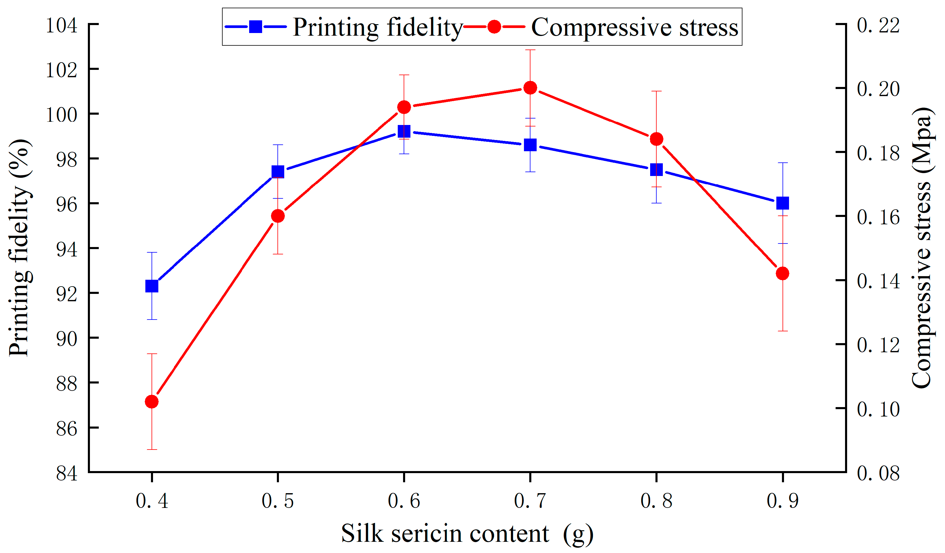 | Printing fidelity (40%) | Shape intact, smooth surface, neat edges. A 98.6% ≤ Printing fidelity ≤ 101.4% | 31~40 |