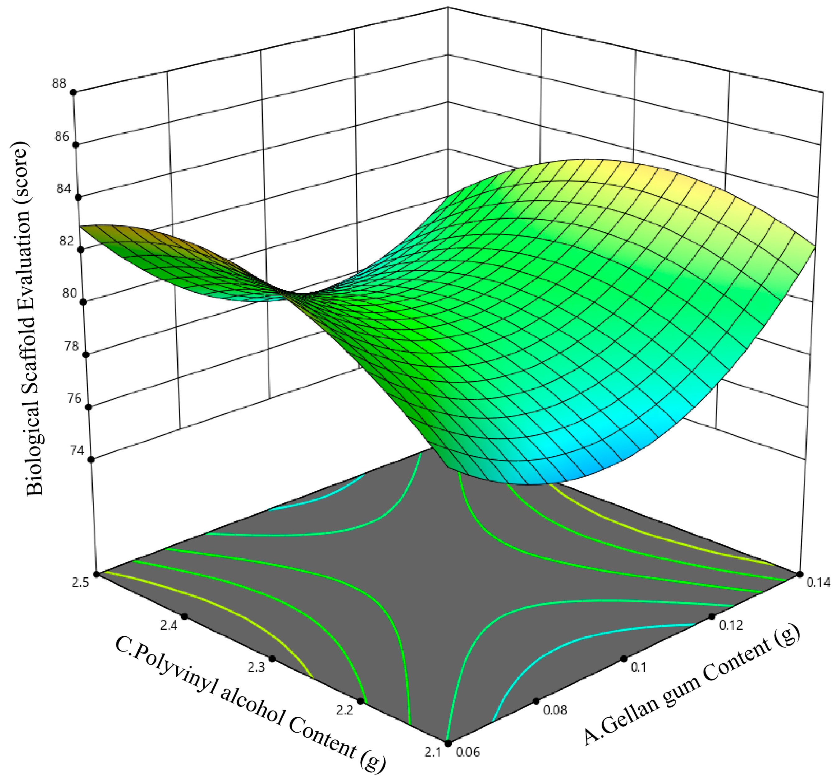 | Run No | A(g) | B(g) | C(g) | Comprehensive Performance Evaluation of the Scaffold (Score) |