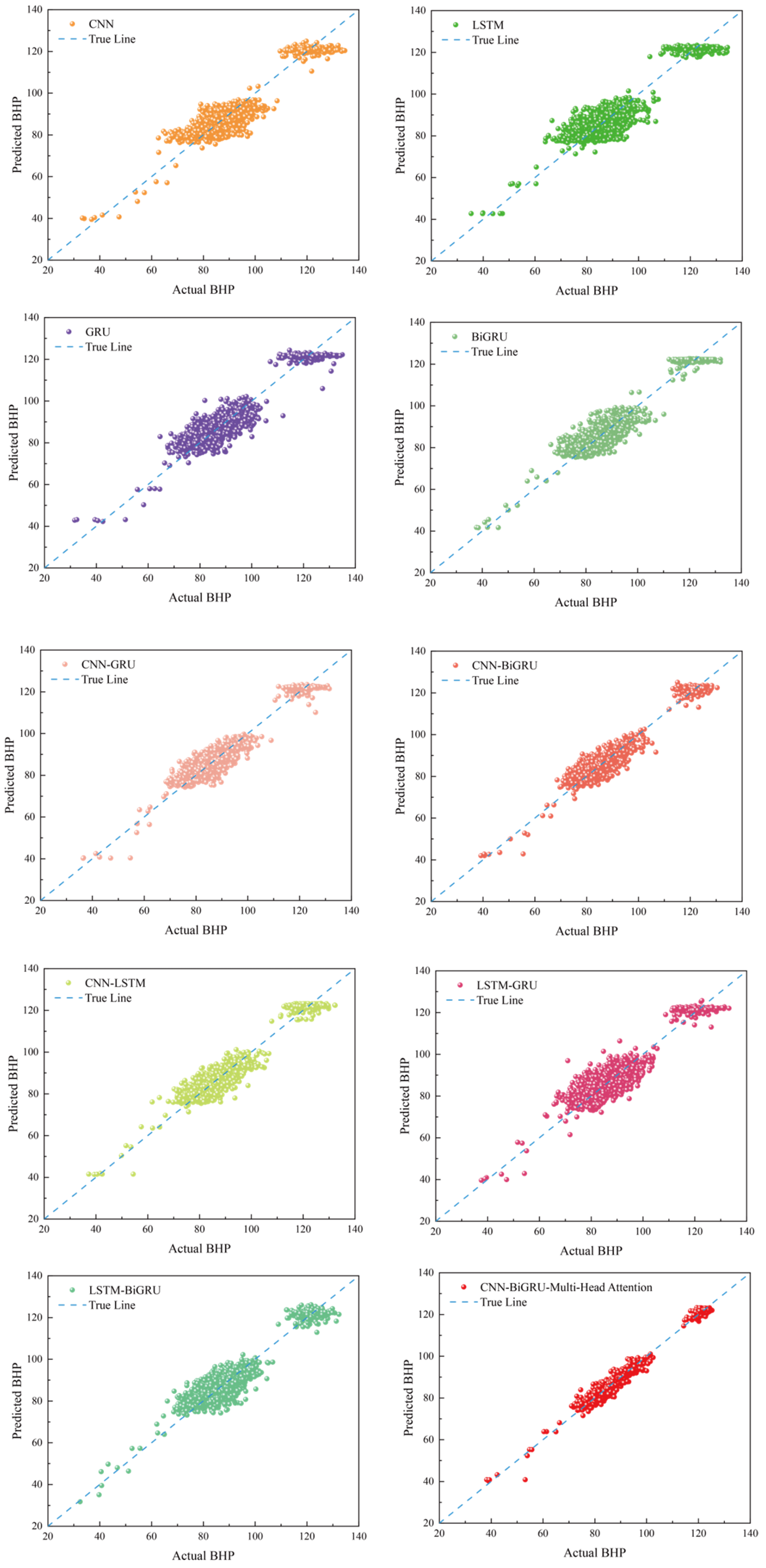 - The CNN-BiGRU-Multi-Head Attention model architecture fully integrated local feature extraction, sequence modeling, and attention-based focus capabilities, enabling more precise modeling of pressure sequences.