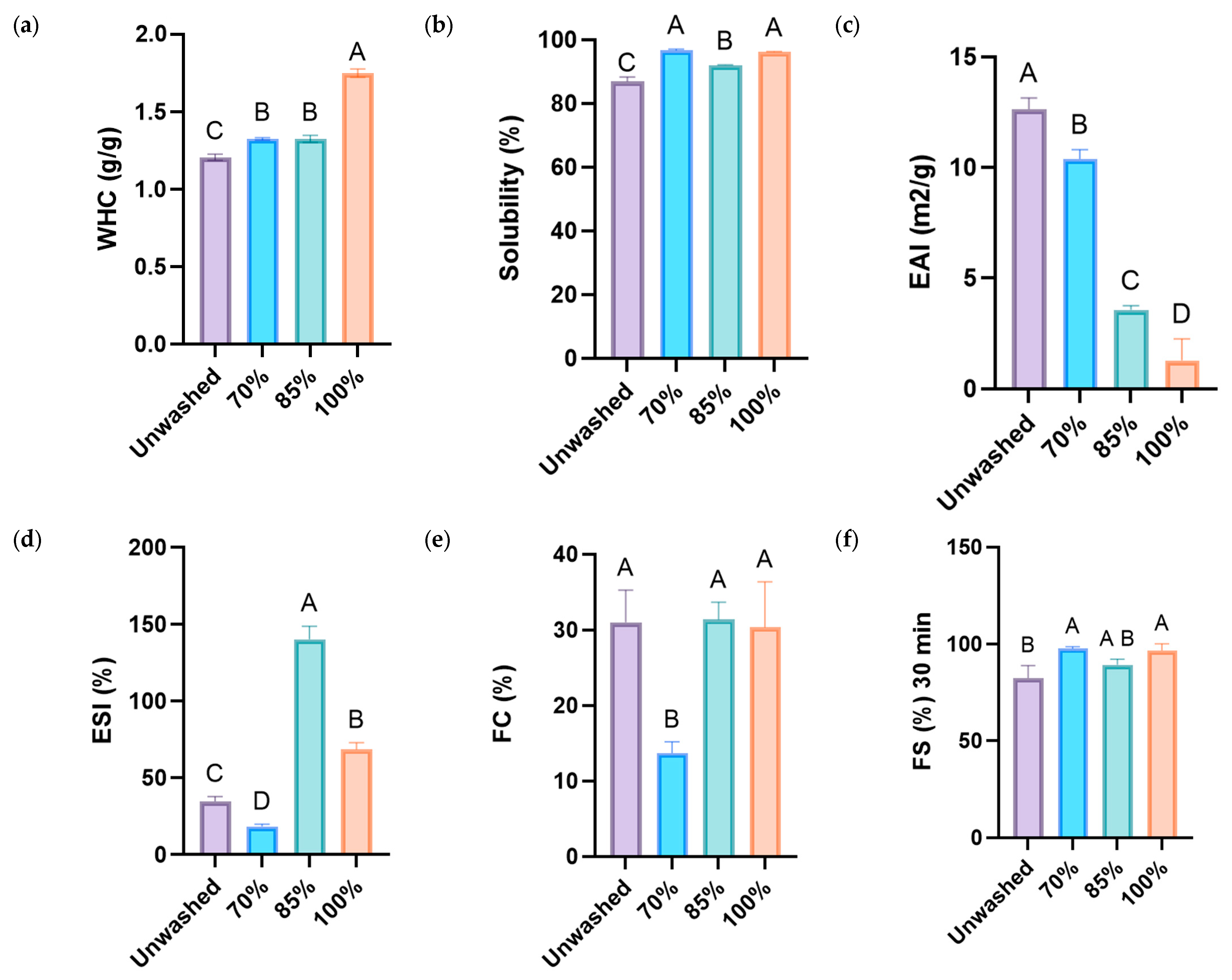 | Unwashed | 21.27 ± 0.14 D | 3.24 ± 0.04 A | 13.13 ± 0.19 D |