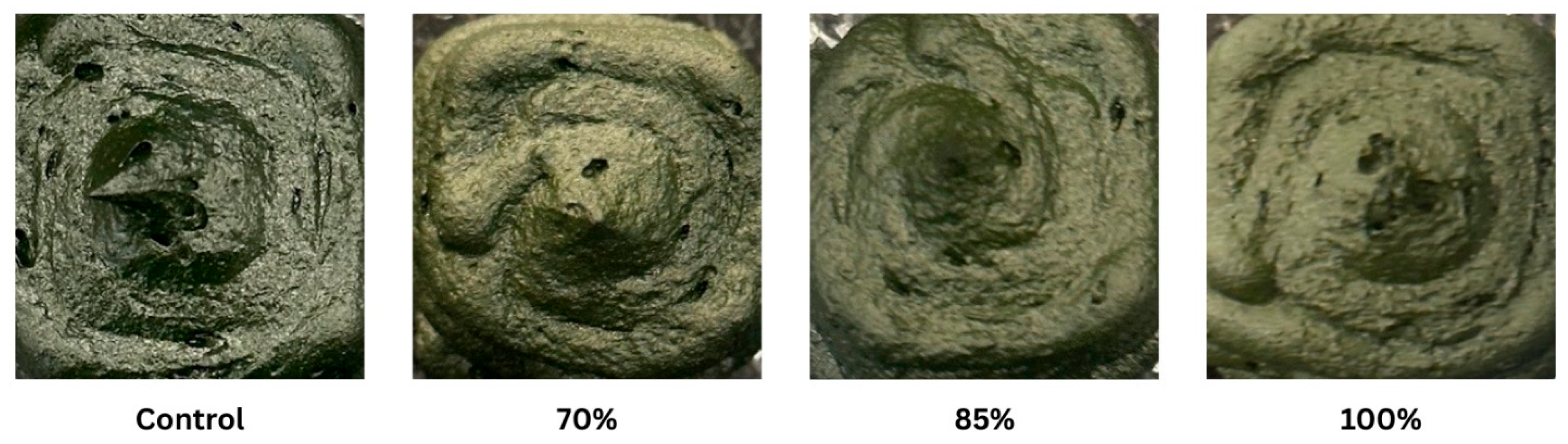 3.4. Texture Profiles of Microalgae-Based 3D Prints