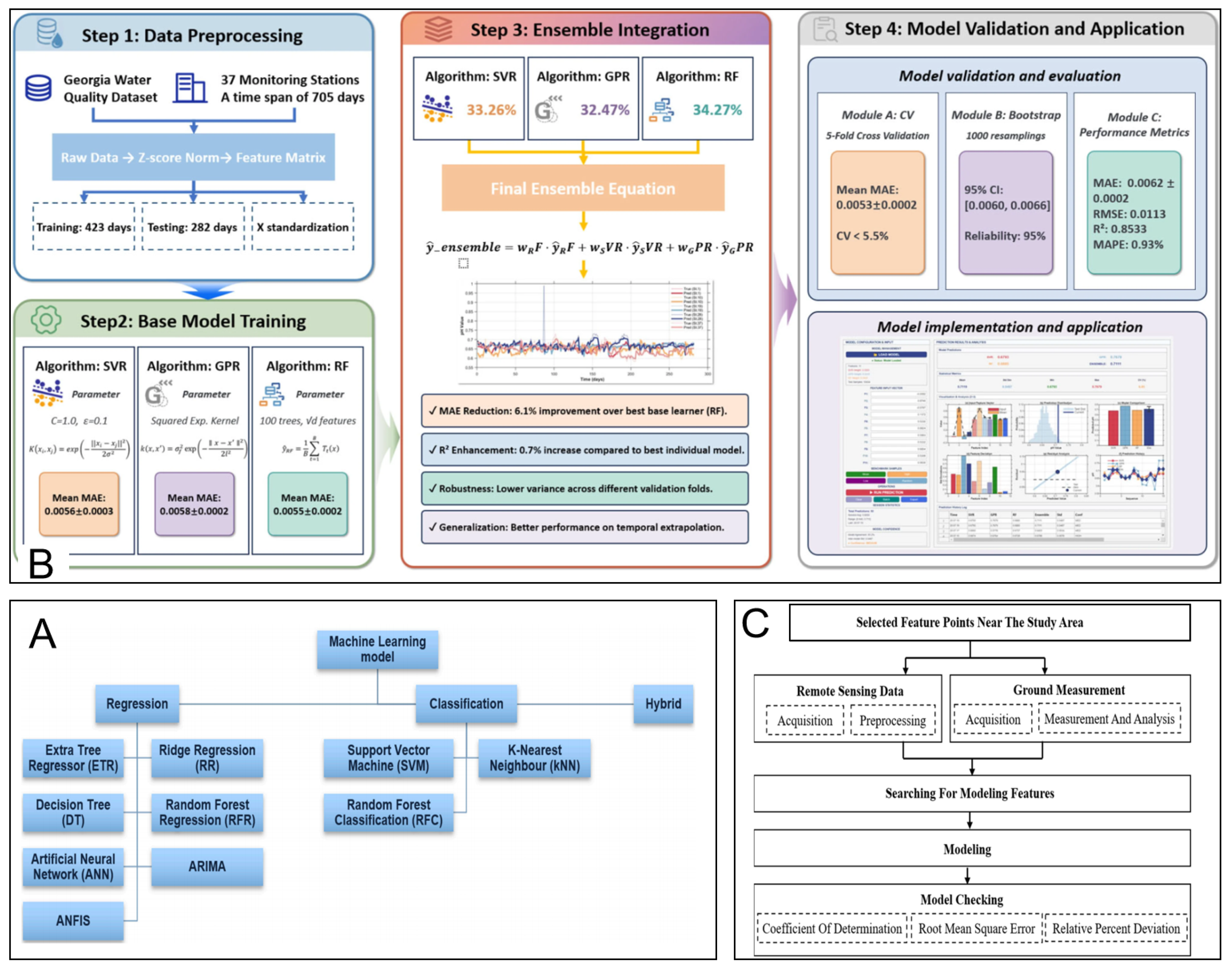 - Chen, W.; Shao, Y.; Xu, Z.; Zhou, B.; Cui, S.; Dai, Z.; Yin, S.; Gao, Y.; Liu, L. Ensemble Machine Learning for Operational Water Quality Monitoring Using Weighted Model Fusion for pH Forecasting. Sustainability 2026, 18, 1200. [Google Scholar] [CrossRef]