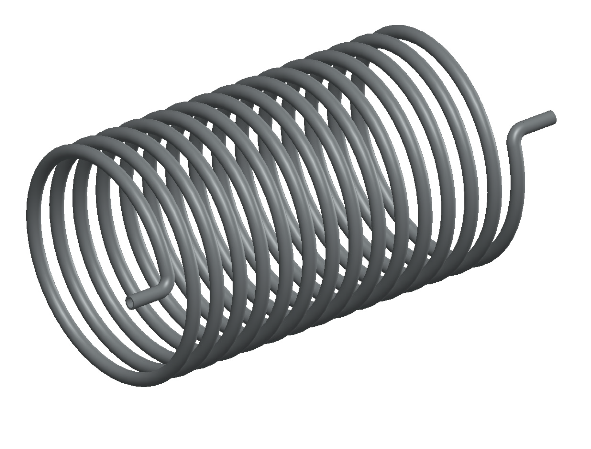 Each element of the CT provides a tube length of 4.75 m and consists of 15 coils (0.1 m coil diameter) and a straight inlet/outlet tube of a 2 cm length (Figure 4, Table 2). Due to the centrifugal forces developing in the coils at Dean numbers ≥5 [33], a secondary flow pattern is fully established, leading to increased radial mixing and, thus, to an improved plug flow [34]. Each SMX reactor element provides a length of 1.5 m in a straight tube (Table 2). The structured packing of the SMX static mixer intensively increases radial mixing (plug flow) and heat transfer compared to an empty tube [35,36].