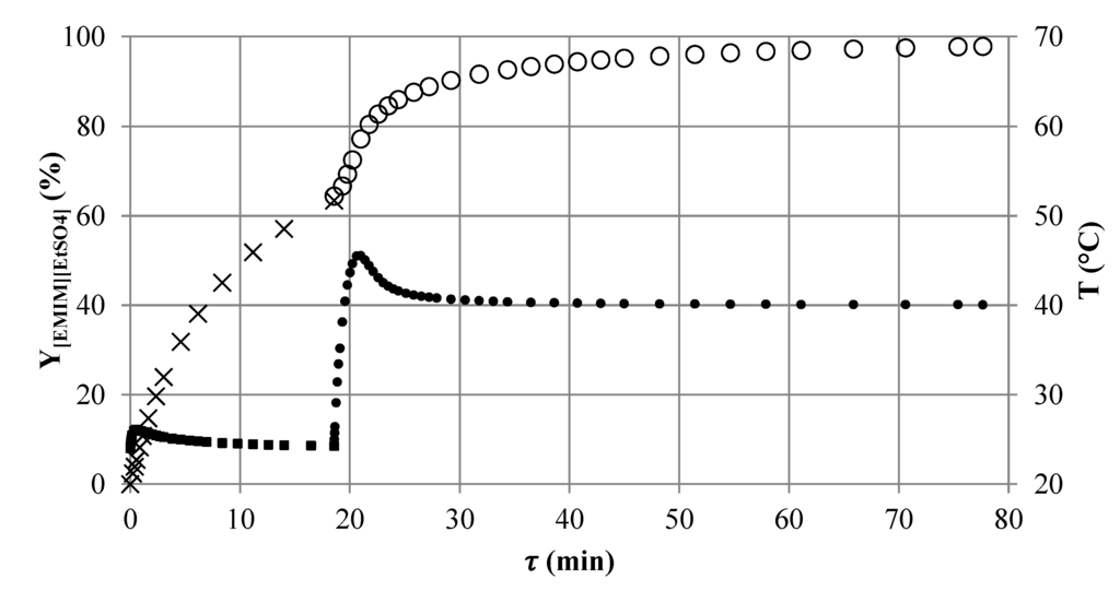- Große Böwing, A.; Jess, A. Kinetics and reactor design aspects of the synthesis of ionic liquids—Experimental and theoretical studies for ethylmethylimidazole ethylsulfate. Chem. Eng. Sci. 2007, 6, 1760–1769. [Google Scholar]