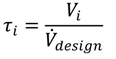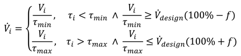In order to decide whether a predefined reactor system, i, from the database is suitable for the process or not, the mean residence time of the reactor has to fit in the space of an interval of allowable minimal/maximal residence time of the process (Equation (2)).