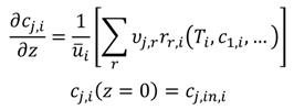 The resulting technically applicable reactor systems will be simulated by a simplified axial reactor model. Therefore, the balances for all components, j (Equation (16)), and the coupled energy balance (Equation (17)) of each reactor system, i, have to be solved numerically. Ideal plug flow behavior in the reactors is assumed for the differential modelling.