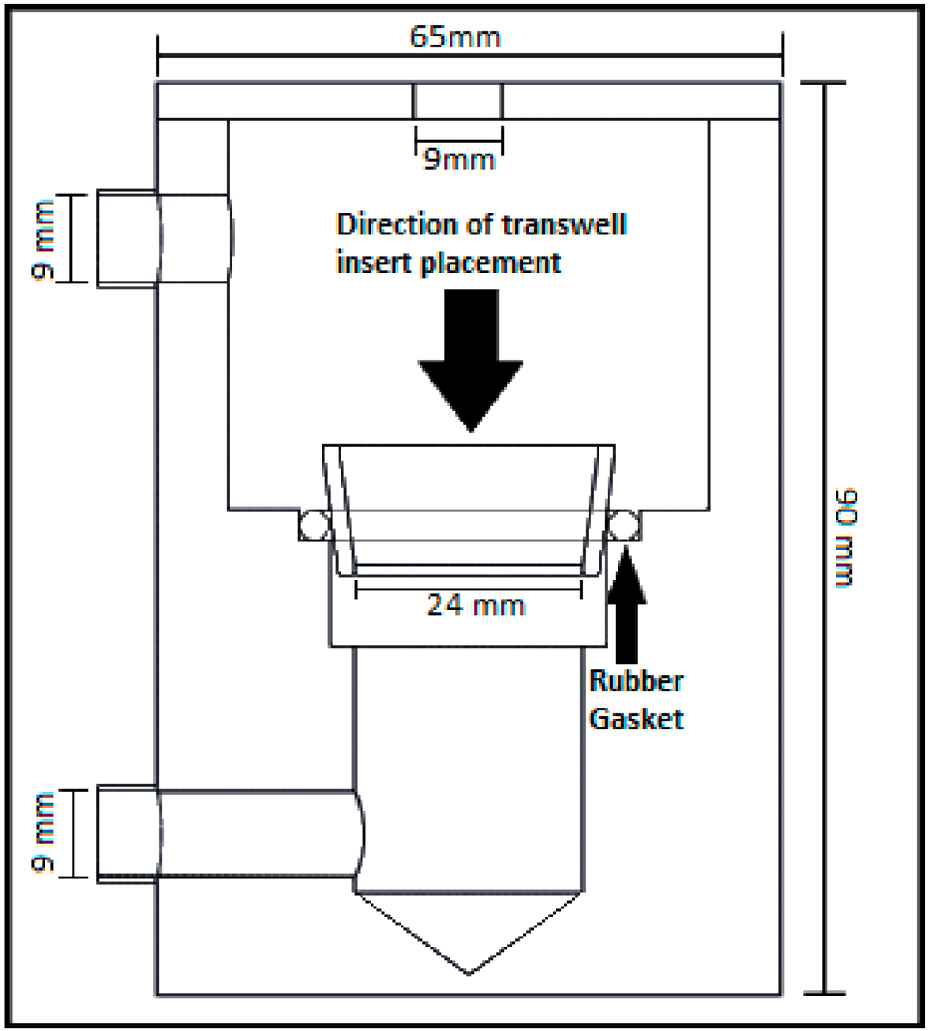 Cross-sectional diagram of the bioreactor chamber depicting the position of the transwell insert within the chamber.