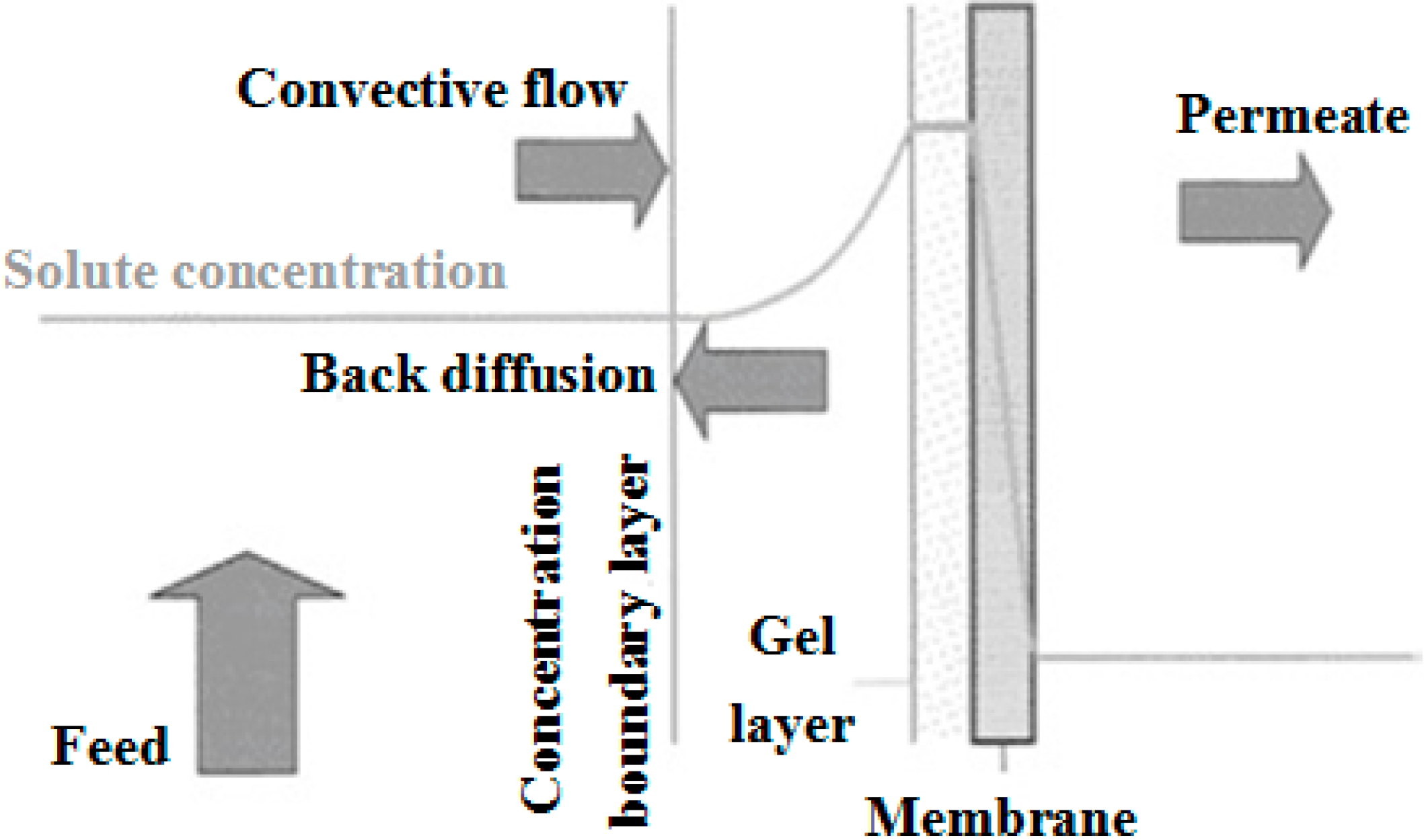 Concentration polarization. Reproduced with permission from Reference [81]. Copyright 2000 IWA Publishing.