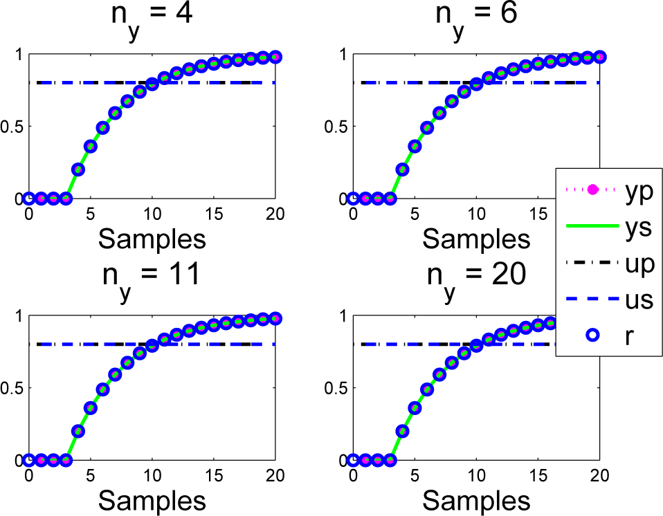 - Following Conjecture 1 and due to the lag in the process (the step response takes a few samples to start moving significantly), it is not reasonable to use ny < 5. Similarly, ny > 15 will put too much emphasis on the steady state.