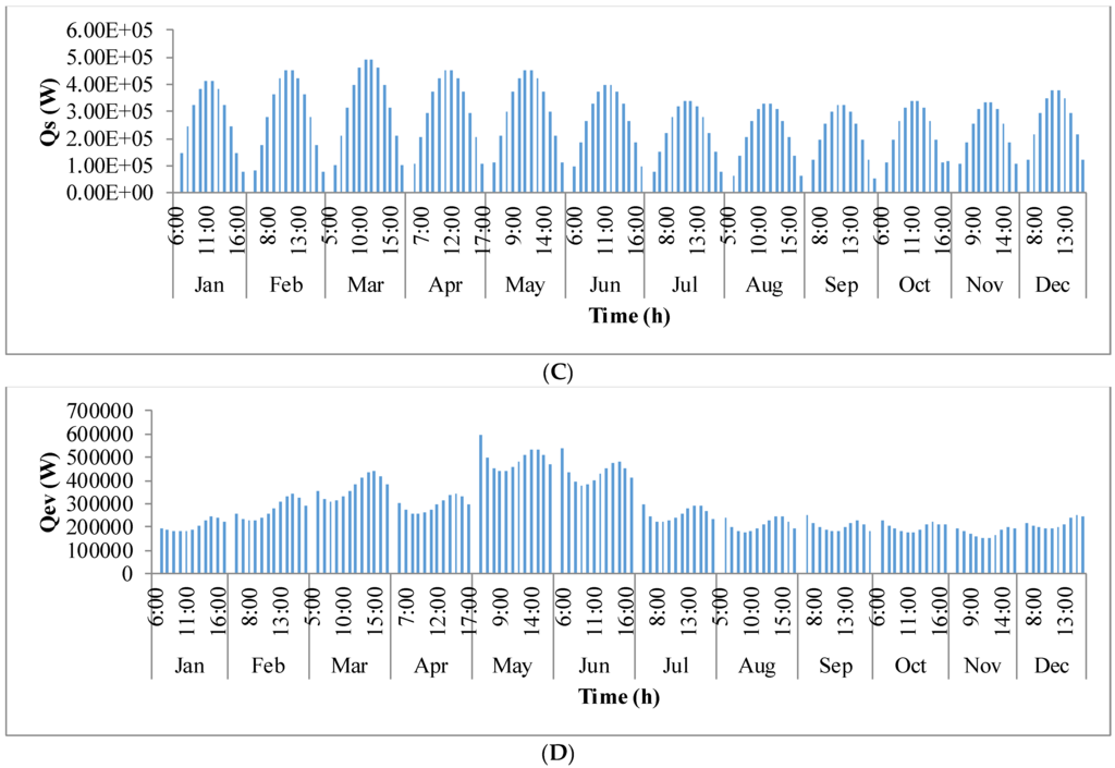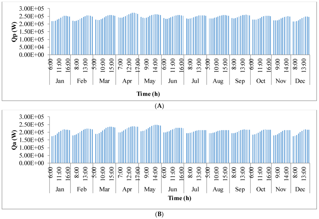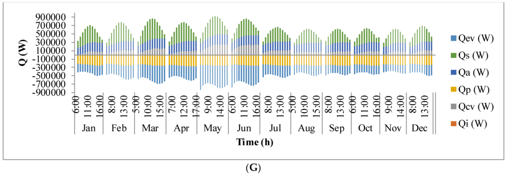 Figure 9 shows the annual variation in heat flow in open-channel raceway ponds. The
