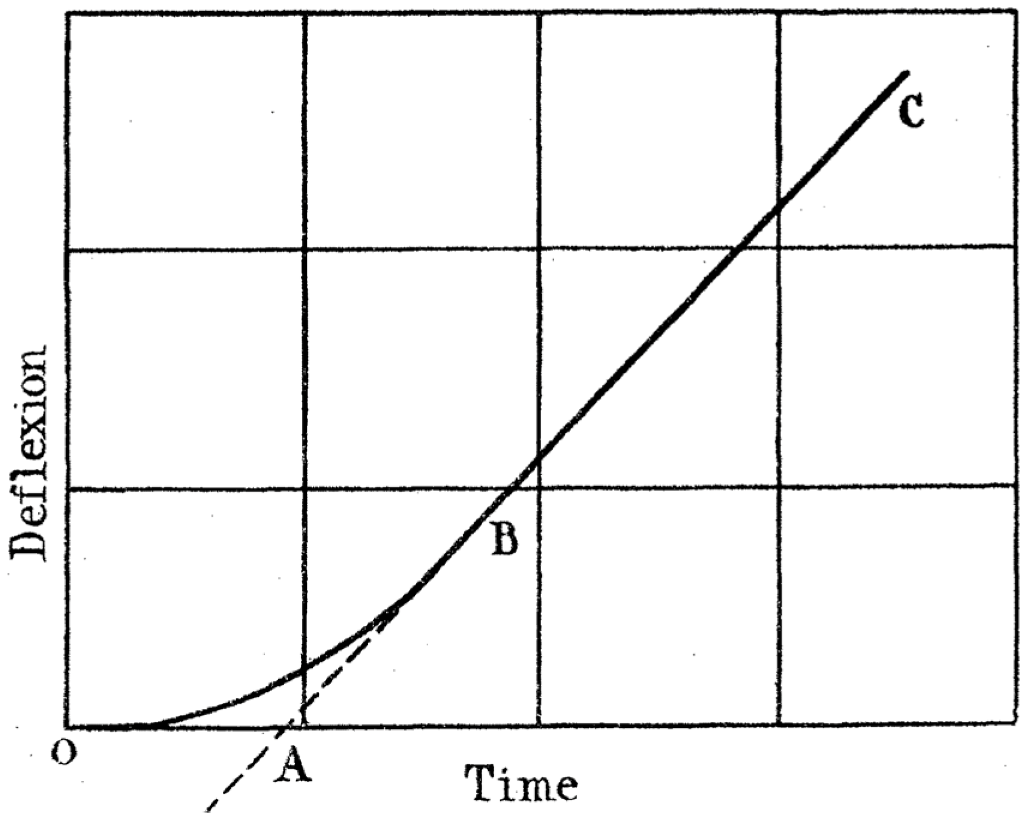Back in 1920, H. A. Daynes introduced the concept of “time lag” (2) to express the time it takes for gases to achieve steady state (Figure 8) when permeating through a rubber membrane of thickness l [104]. Note that the y axis in Figure 8 represents the response (deflexion) of a galvanometer that measured the current from a katharometer (TCD detector) that was used to detect the flow of gases (hydrogen in Daynes’ experiments) in the permeate side of the membrane. The aim was to separate the solubility component from diffusivity using permeability data. By relating the time lag (L) to the diffusivity (K), he succeeded in calculating the solubility and diffusivity constants from permeability data.
