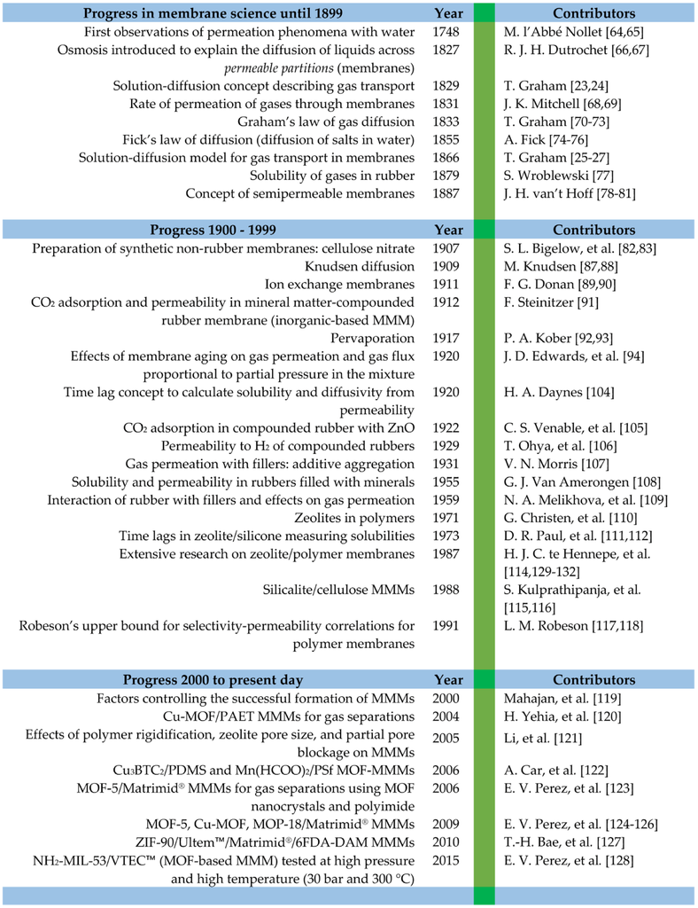 The chronological listing of these advances and other significant progress in the field of membrane science is shown in Figure 10 at the end of this section.