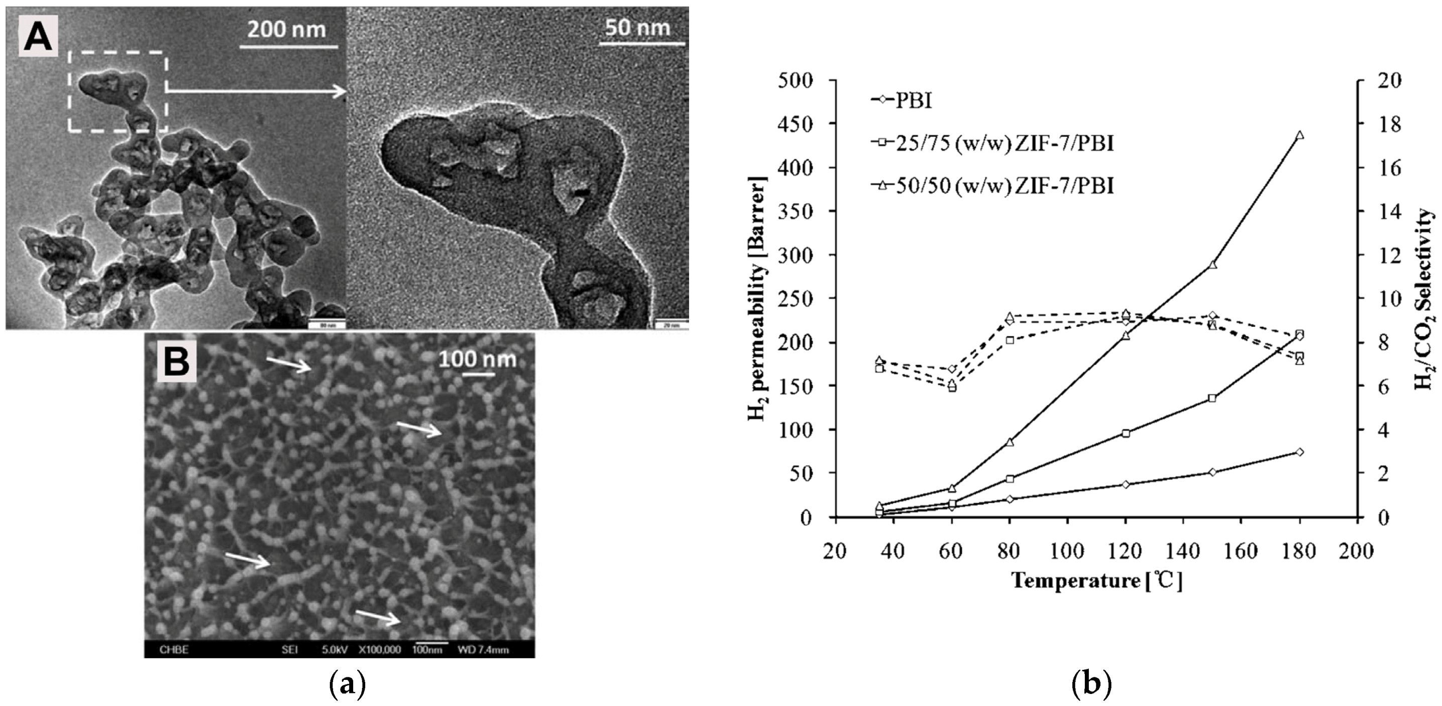 - Yang, T.; Shi, G.M.; Chung, T.-S. Symmetric and asymmetric zeolitic imidazolate frameworks (ZIFs)/polybenzimidazole (PBI) nanocomposite membranes for hydrogen purification at high temperatures. Adv. Energy Mater. 2012, 2, 1358–1367. [Google Scholar] [CrossRef]