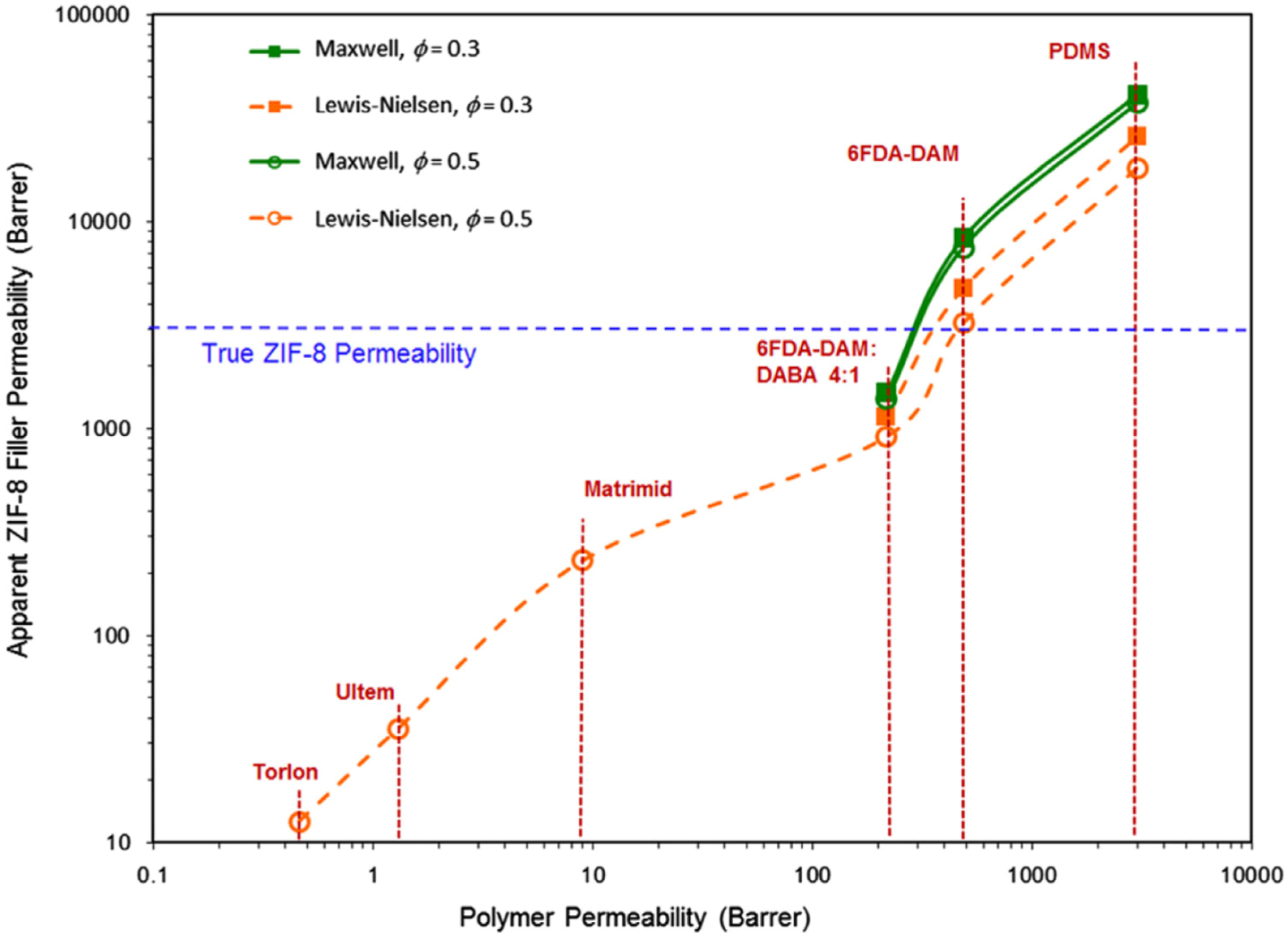 - Pal, R. Permeation models for mixed matrix membranes. J. Colloid Interface Sci. 2008, 317, 191–198. [Google Scholar] [CrossRef] [PubMed]