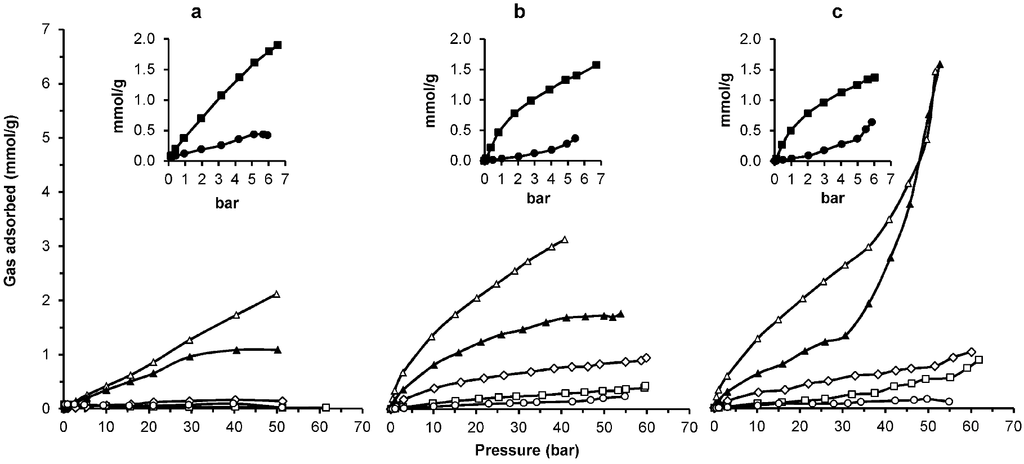- Yaghi, O.M.; Rosi, N.L.; Eckert, J.; Eddaoudi, M.; Vodak, D.T.; Kim, J.; O’Keeffe, M. Hydrogen storage in microporous metal-organic frameworks. Science 2003, 300, 1127–1129. [Google Scholar]