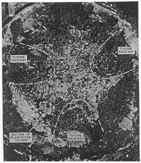 Photograph of the frozen tuyere zone. Reproduced with permission from [4], Springer, 1987.