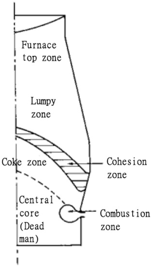 Zones within the blast furnace. Reproduced with permission from [4], Springer, 1987.