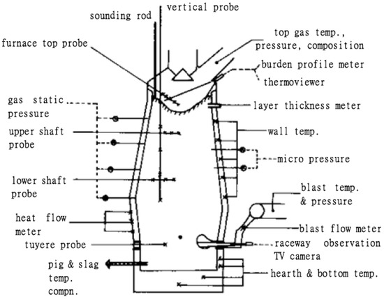 Instrumentation of blast furnaces built after the dissection works Reproduced with permission from [4], Springer, 1987.