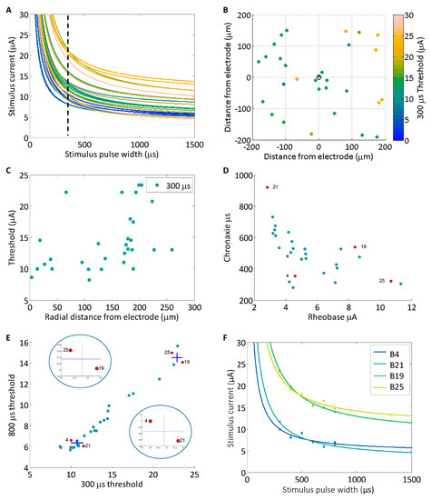 - Boinagrov, D.; Loudin, J.; Palanker, D. Strength–duration relationship for extracellular neural stimulation: Numerical and analytical models. J. Neurophysiol. 2010, 104, 2236–2248. [Google Scholar] [CrossRef] [PubMed]