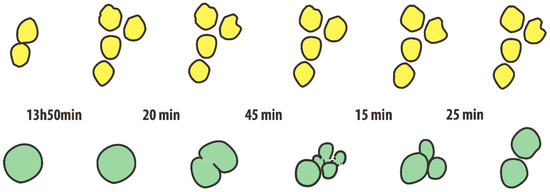 During his doctoral thesis, M. Jordan analyzed light-microscopic video-images of non-shaken hybridoma cultures. He could trace the fate of individual cells over several replication cycles [18]. One of the striking observations was the following: Two cells derived from a prior cell division (i.e., clonal sisters), presented significant differences in time accrued until the next cell division. One daughter cell divided after 13 h, the other only after 20 h. Another set of images (Figure 2), taken over a period of 18 h, shows three cells in the first image resting on the surface of the culture chamber. One of the cells is larger in diameter than typical, whereas the two others had just divided (they touch each other). About 14 h later, the two cells have divided again to generate a set of four daughter cells, whereas the ‘big one’ still sits untouched. However, another 20 min later, the big cell “divides“ over a period of 2 h into two and then five cells (or cell fragments) to then fuse to three and then to two cells. The figure shows a hand-drawn image of these events, derived from the original black and white photographic images. While such divisions and fusions could be the cause for tetraploidization of cells we really do not know what drives these phenomena that are considered ‘unusual’. However, they should not to be taken as rare. While hybridoma cultures may be considered a case of immortalized cells with a high propensity for chromosomal instability (due to the enforced fusion of mouse cells for their generation), anybody who has looked into CHO cultures by microscopy will verify the rather frequent occurrence of cells that are significantly larger in diameter than majority of cells (1–5%). Big cells are a strong indicator of a large nucleus, containing more chromosomes than typical. Thus the presence of cells whose genome has been enlarged due to entire or partial duplications of their chromosome set appear not to be a rare event in CHO cells.