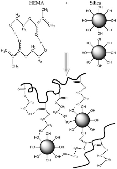Schematic illustration of the polymerization of HEMA to PHEMA in the presence of nano-silica.