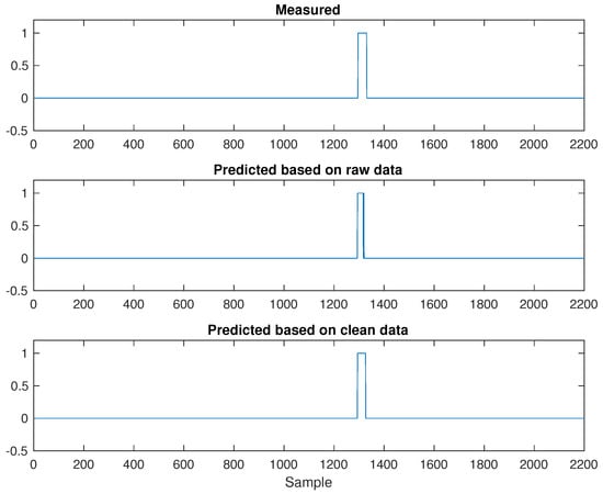 Furthermore, Figure 10 and Figure 11 illustrate flare monitoring results obtained from PLS-DA models built on raw and clean data sets. While Y = 1 indicates the occurrence of non-routine flares, Y = 0 represents normal operation. Regarding Flare 1 results, comparing the middle plot with the bottom one shown in Figure 10, we can see that cleaning outliers will slightly increase the width of rectangular pulse, leading to a flare detection result close to the true measured flare events given by the plot on top.
