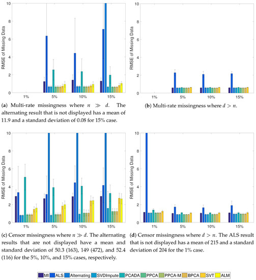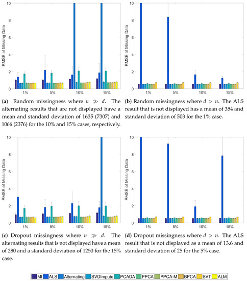 - Ilin, A.; Raiko, T. Practical approaches to principal component analysis in the presence of missing values. J. Mach. Learn. Res. 2010, 11, 1957–2000. [Google Scholar]