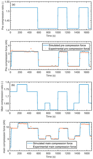 (a) Pre-compression force model validation (b) Main compression force model validation.