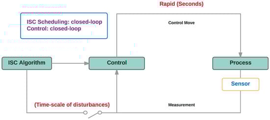Closed-loop reactive ISC responds to process uncertainty in a reactive rather than preventative manner []. Preventative approaches to dealing with process uncertainty in ISC have also been investigated. Chu and You investigated accounting for process uncertainty in batch processes in a two-stage stochastic programming problem solved by a generalized Benders decomposition []. The computational requirements of the problem prevent online implementation. Dias and Ierapetritou demonstrate the benefits of using robust model predictive control in ISC to optimally address process uncertainty in continuous chemical processes [].