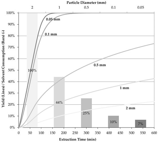 The aforementioned extraction model assumes an average particle diameter of herbal raw feed material. Therefore, for a particle size distribution (PSD), uniform diffusion paths result. This is a simplifying assumption, which has to be proven at any industrial application first, as the particle size distribution is an easily accessible dimension. Due to this, the model is normally extended to a realistic particle size distribution.