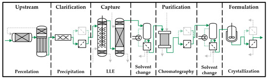 - Eggersgluess, J.; Wellsandt, T.; Strube, J. Integration of aqueous two-phase extraction into downstream processing. Chem. Eng. Technol. 2014, 37, 1686–1696. [Google Scholar] [CrossRef]