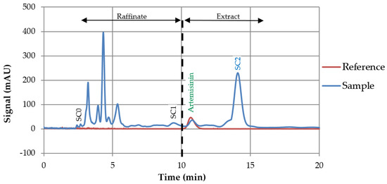 The purification studies of artemisinin found in the literature can be split into two different fields of interest. The first is the separation of artemisinin from reaction mixtures. In this case, the reaction mixture can be separated (purified) by a simulated moving bed chromatography (SMB) [15,16]. The second field is the purification of the plant extract from Artemisia annua L. Based on this extract, different chromatographic purification strategies are available. One is the purification of the extract using a solid-liquid extraction (SLE). Most of the studies perform a chromatographic purification followed by a crystallization step [17,18,19,20]. Moreover, the pre-purification using crystallization followed by a final chromatographic step is possible [21,22].