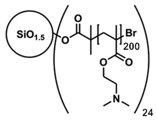 The transfection agent was a well-defined 24-armed PDMAEMA nanostar (number average of the molecular weight: 755 kDa, polydispersity: <1.21) synthesized as previously described [26] via atom transfer radical polymerization (ATRP) from a silsesquioxane initiator core. Each arm of the nanostar contained an average of 200 monomeric units, Scheme 1. A stock solution (1.82 mg mL−1) was prepared in sterile ultrapure PCR-water (Sigma-Aldrich).